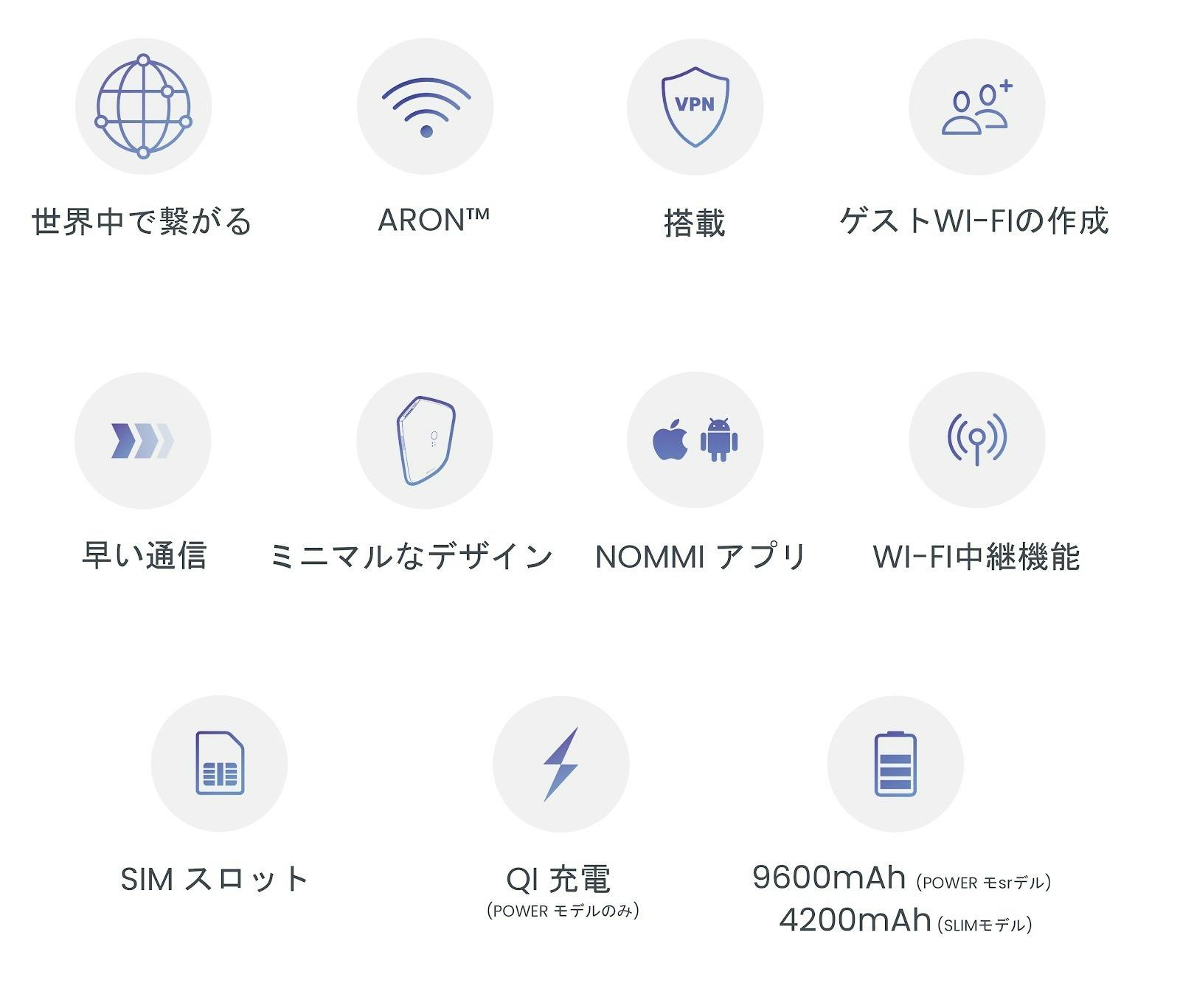 ・革新的なARON™テクノロジー採用で、一番通信の良いWi-Fiに自動で接続
