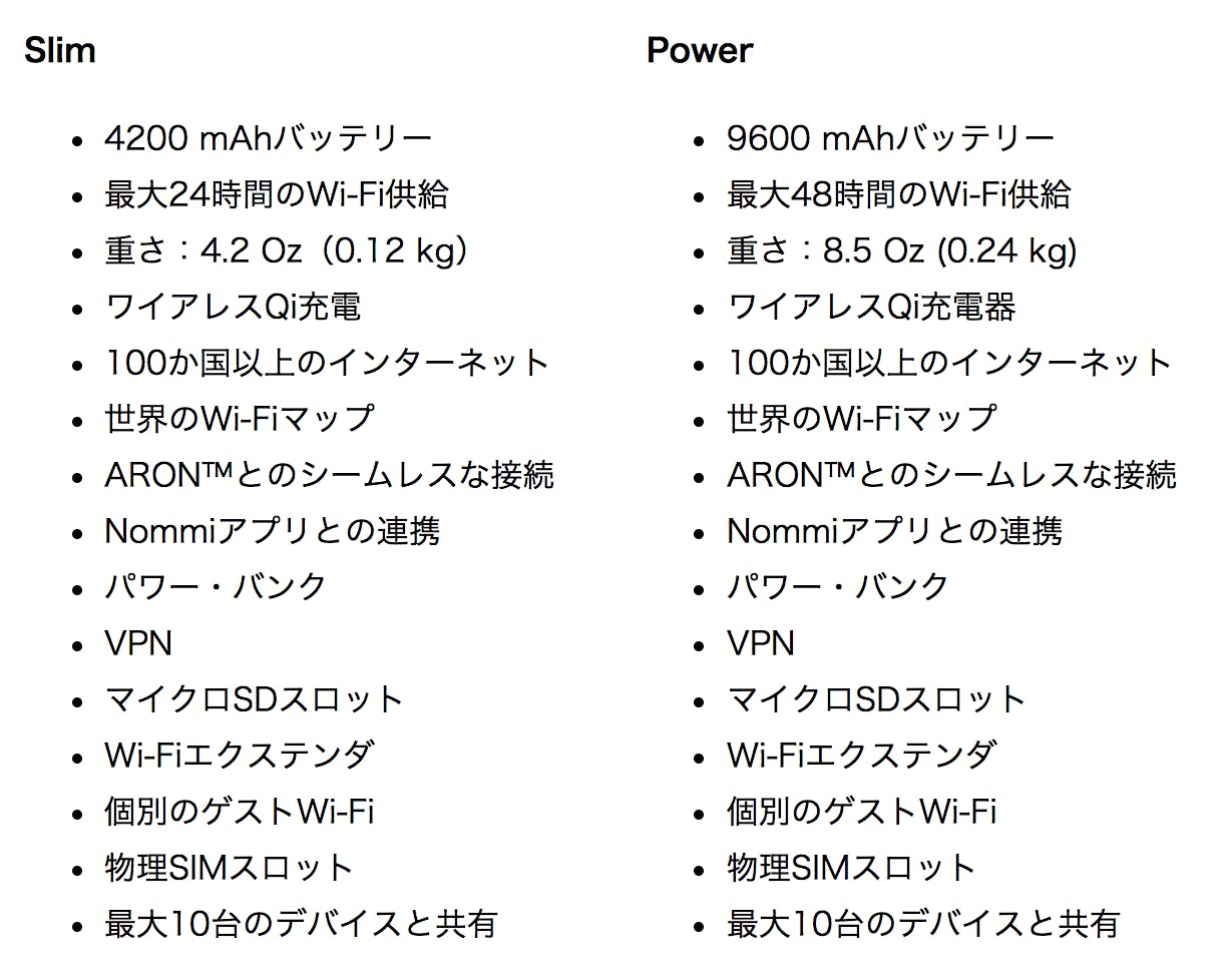 Nommi Slimの4200 mAhバッテリーは、24時間連続のWi-Fi利用、または2回のスマートフォンのフル充電が可能です。