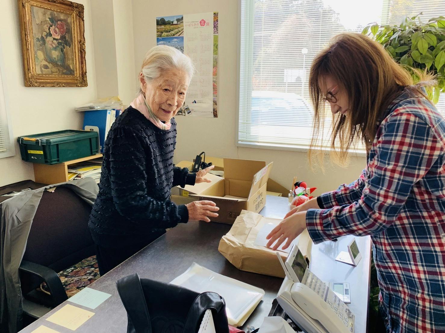 今日のおばあちゃんは書類を袋に詰める、出荷のお手伝いをしました。