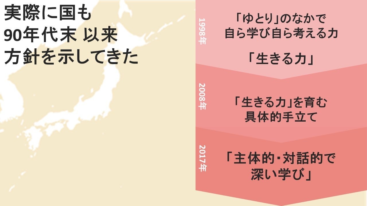 知識偏重型の教育方針からの脱却を試みる教育制度改革といえるでしょう。