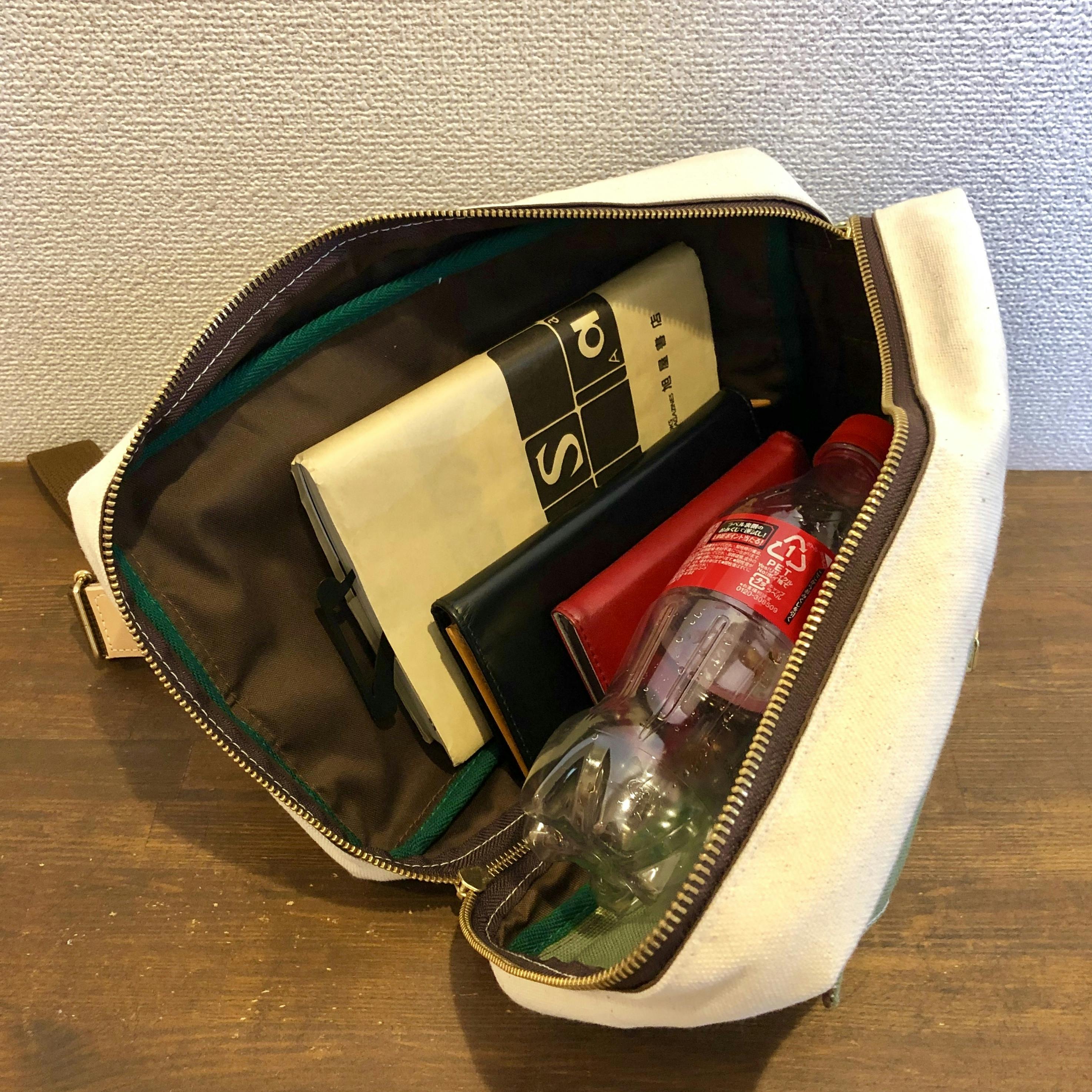 サイフ、スマホ、本、ペットボトルを入れてもまだ余裕があります!