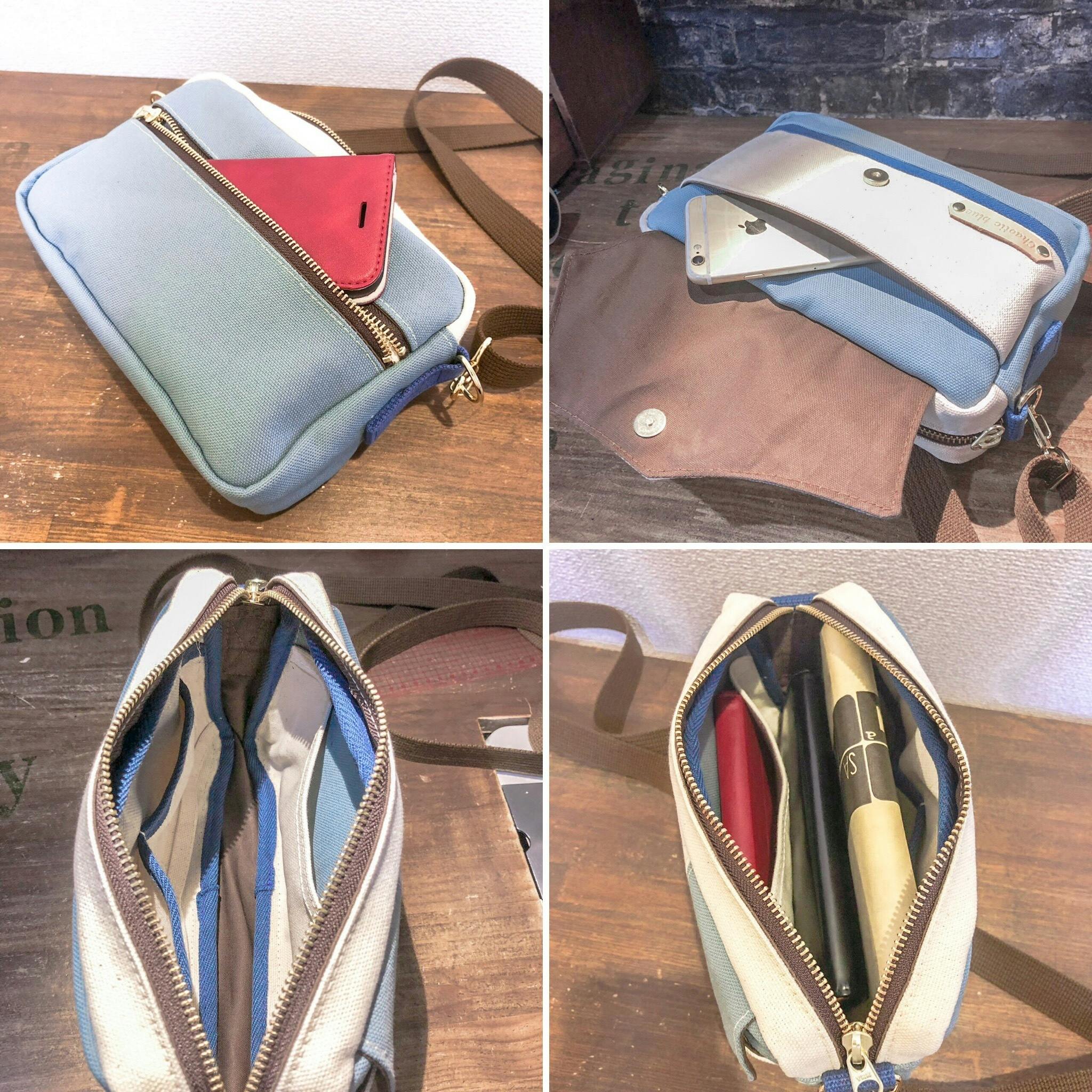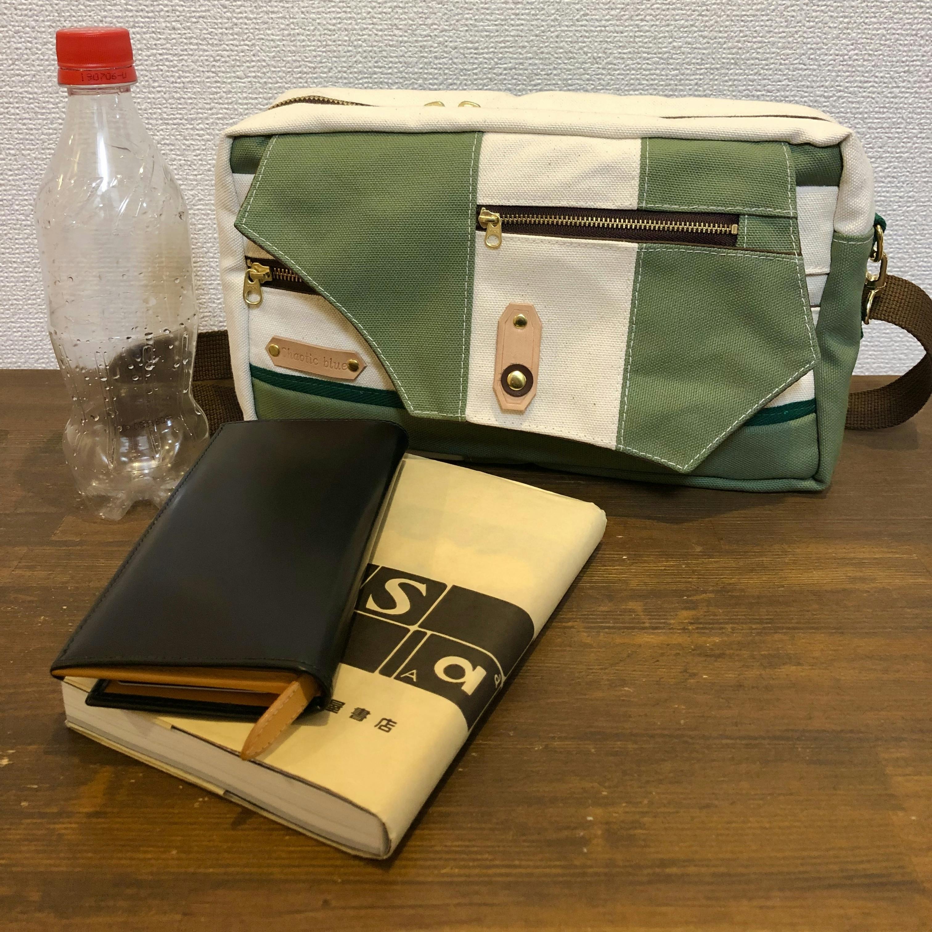 バッグはサイフ、スマホ+本やポーチが収まる、コンパクトサイズ。