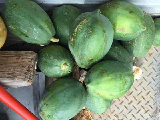 パパイヤを収穫いたしました!パパイヤとベーコンなどをいっしょに炒めると美味しいです!また、和え物でも、美味しく頂けます!今日は100個はありました!また、日を見て収穫致します!