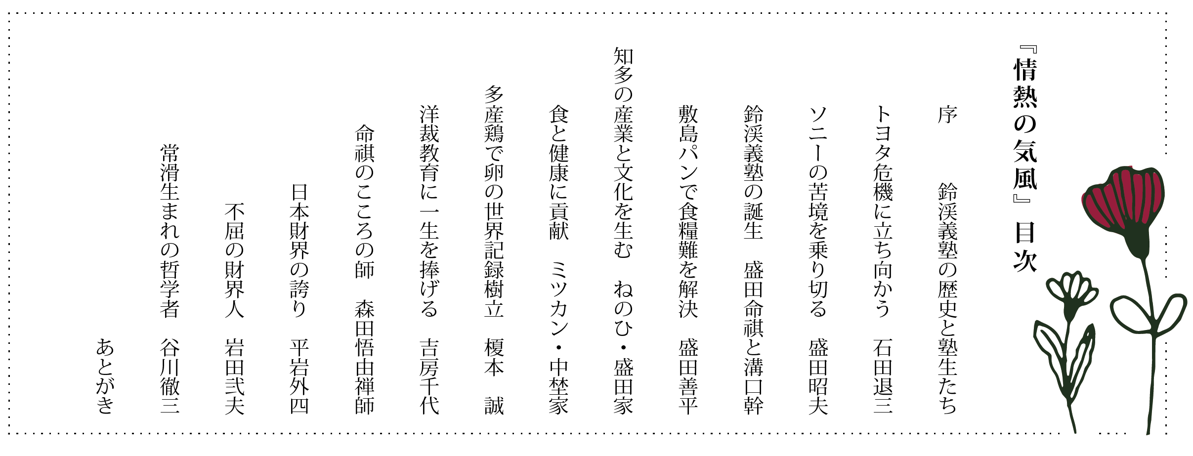 幼少期から経団連会長に至るまでの生い立ちや名言の数々を『情熱の気風』で読むことができます。