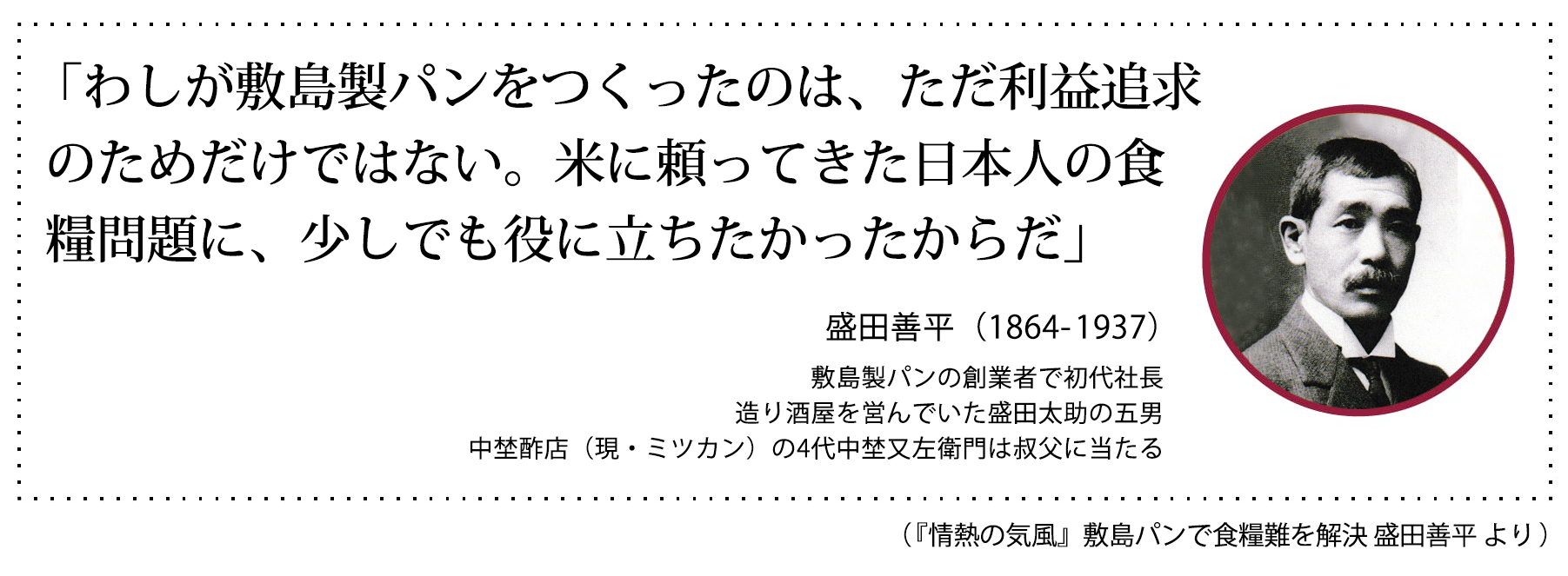 鈴渓義塾の第一期生となるのが、のちに敷島製パン(Pasco、パスコ)を創業する盛田善平です。
