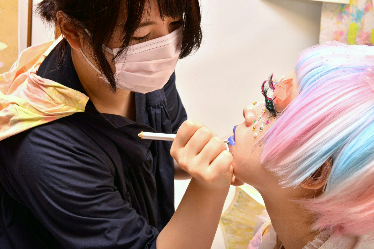 ↑Ushimaruがモデルさんにメイクを施す様子。