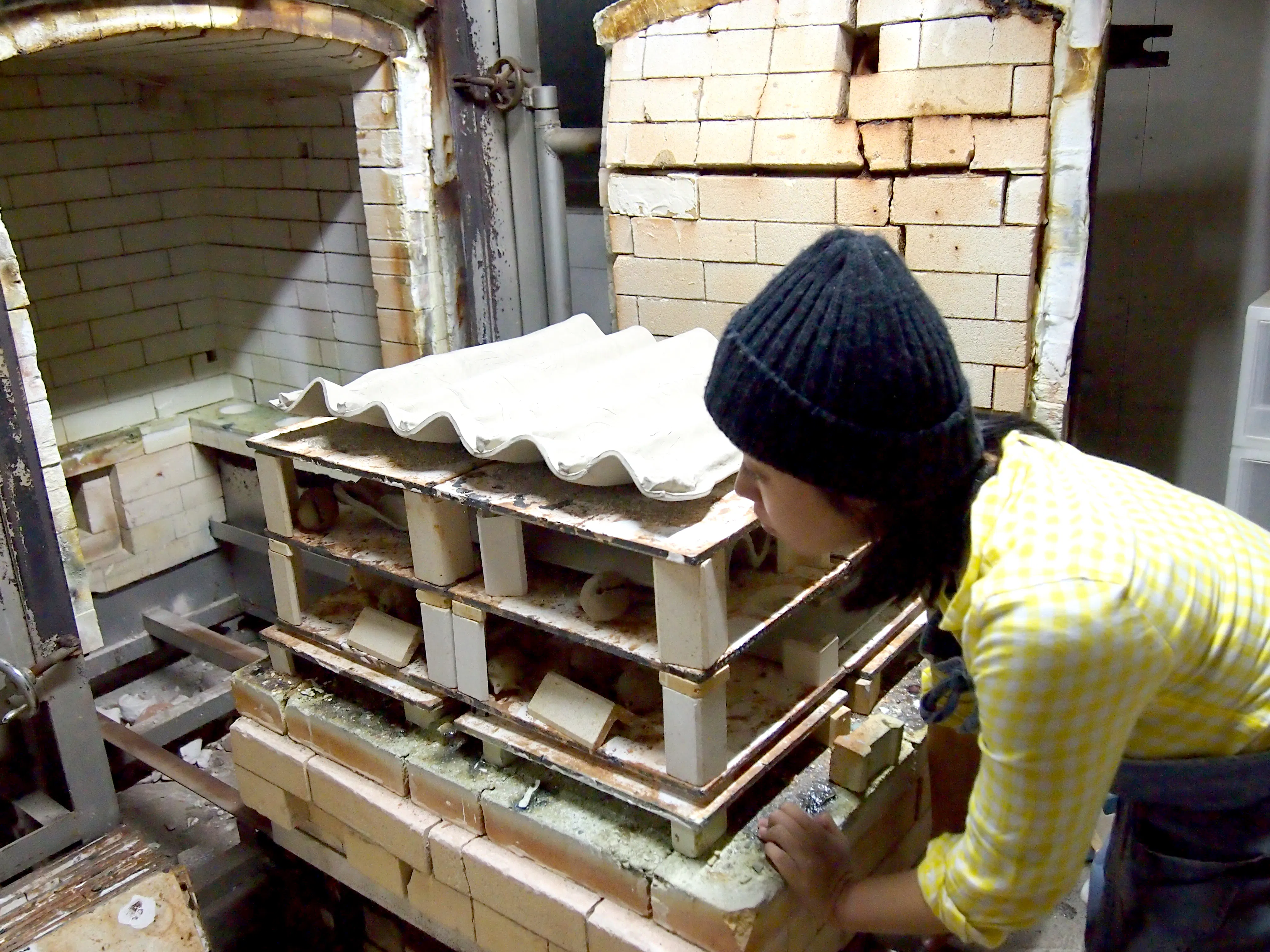 ↑毛塚が窯に作品を詰める様子