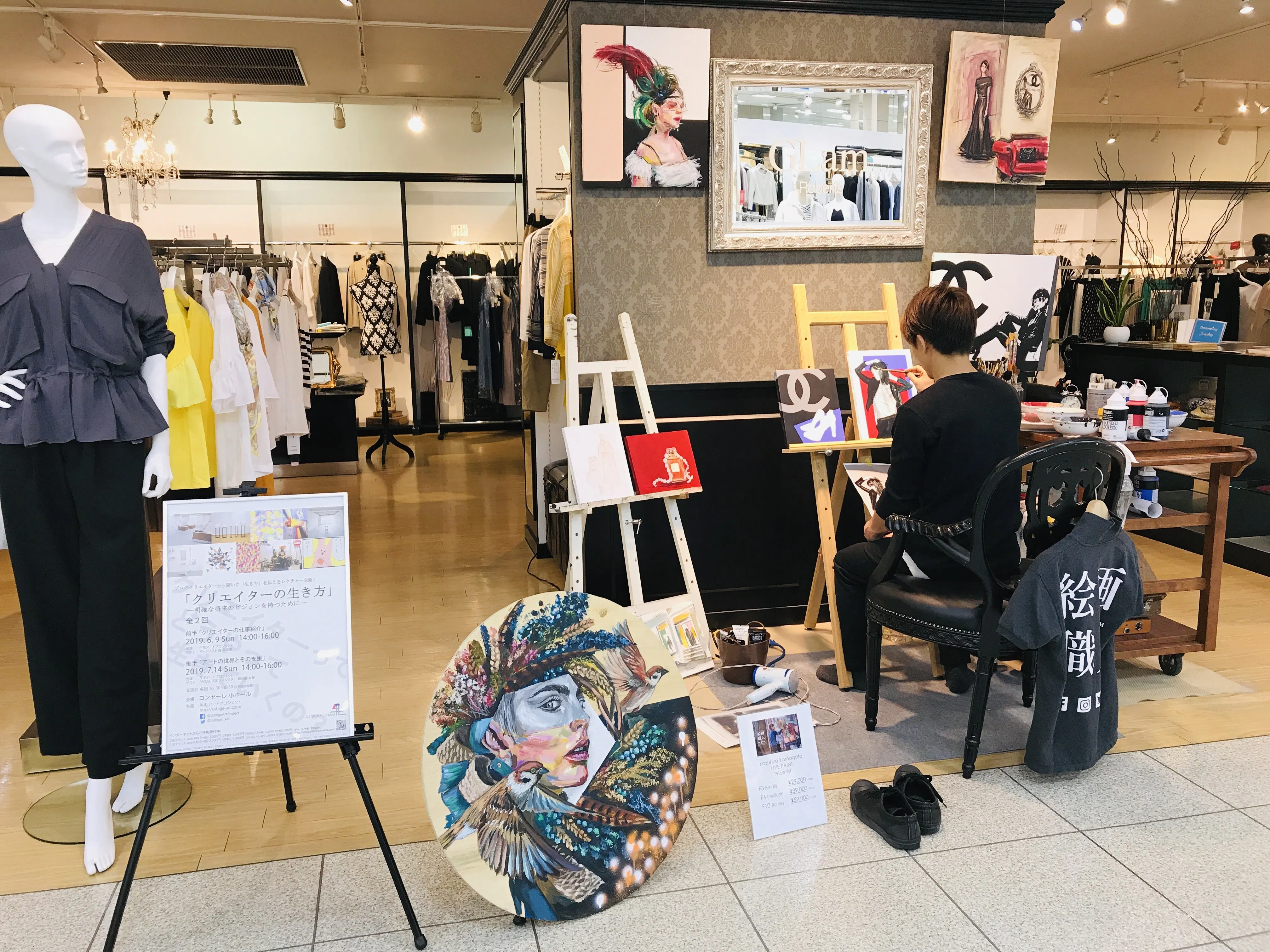 一昨日と昨日、FKD宇都宮でライブペイントを開催されていた絵画職人の山形和宏さんが会場でクリエイターの生き方」ポスターを設置下さいました。