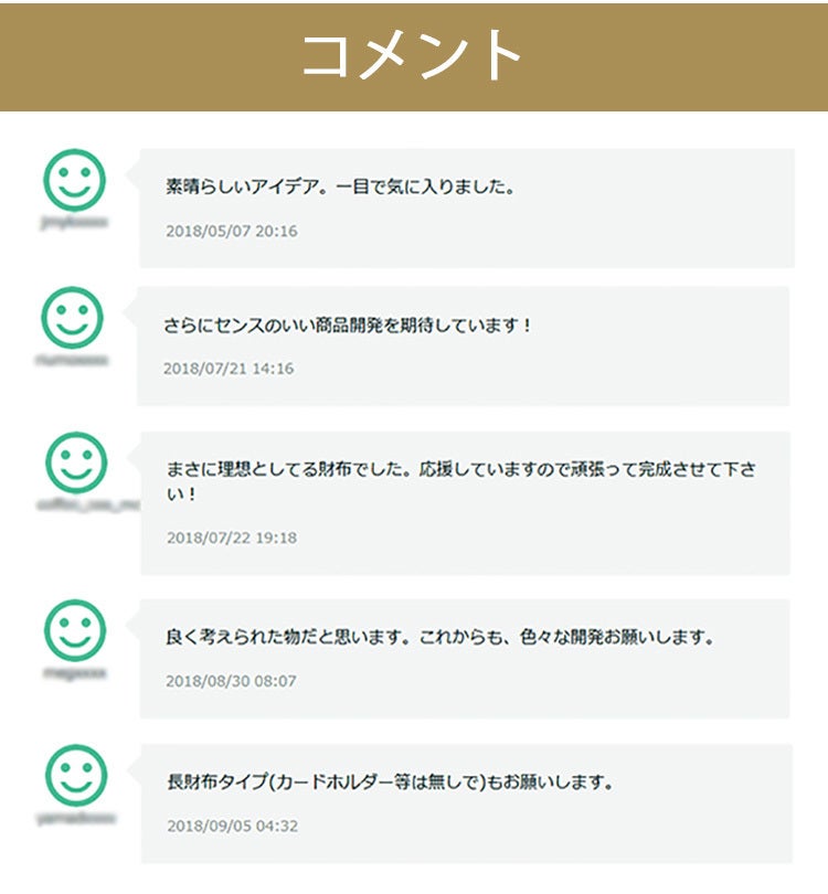 2019/10/18 11:25ご支援いただいた皆さま、こんにちは。雲集商事株式会社でございます。この度は、iPhoneまで入る抜群の収納力 現代建築学に基づき設計された長財布 をご支援いただき、誠にありがとうございました!! 大変ながらくお待たせいたしました!本商品は10月末頃に発送を予定しており、現在発送の準備をすすめております! そこで、ご支援いただいた皆さまにお願いがございます(* >ω<)近ごろ、発送先の記入間違い・部屋番号や市町村以下の詳細などの記入漏れにつき、商品がお届けできないケースが多数発生しております。スムーズにリターン商品をお届けできるよう、今一度、【マイページ】より発送先住所のご確認をお願いいたします!住所の変更がある方は、10/23(水)までに変更のお手続きをお願いいたします。(変更の仕方詳細はコチラ→https://mag.camp-fire.jp/6863/) 詳細の発送日につきましては、決まり次第改めて、活動報告を通じてご報告させていただきます★お手数をおかけいたしますが、どうぞよろしくお願いいたします。 もっと見る配送先の住所確認のお願い