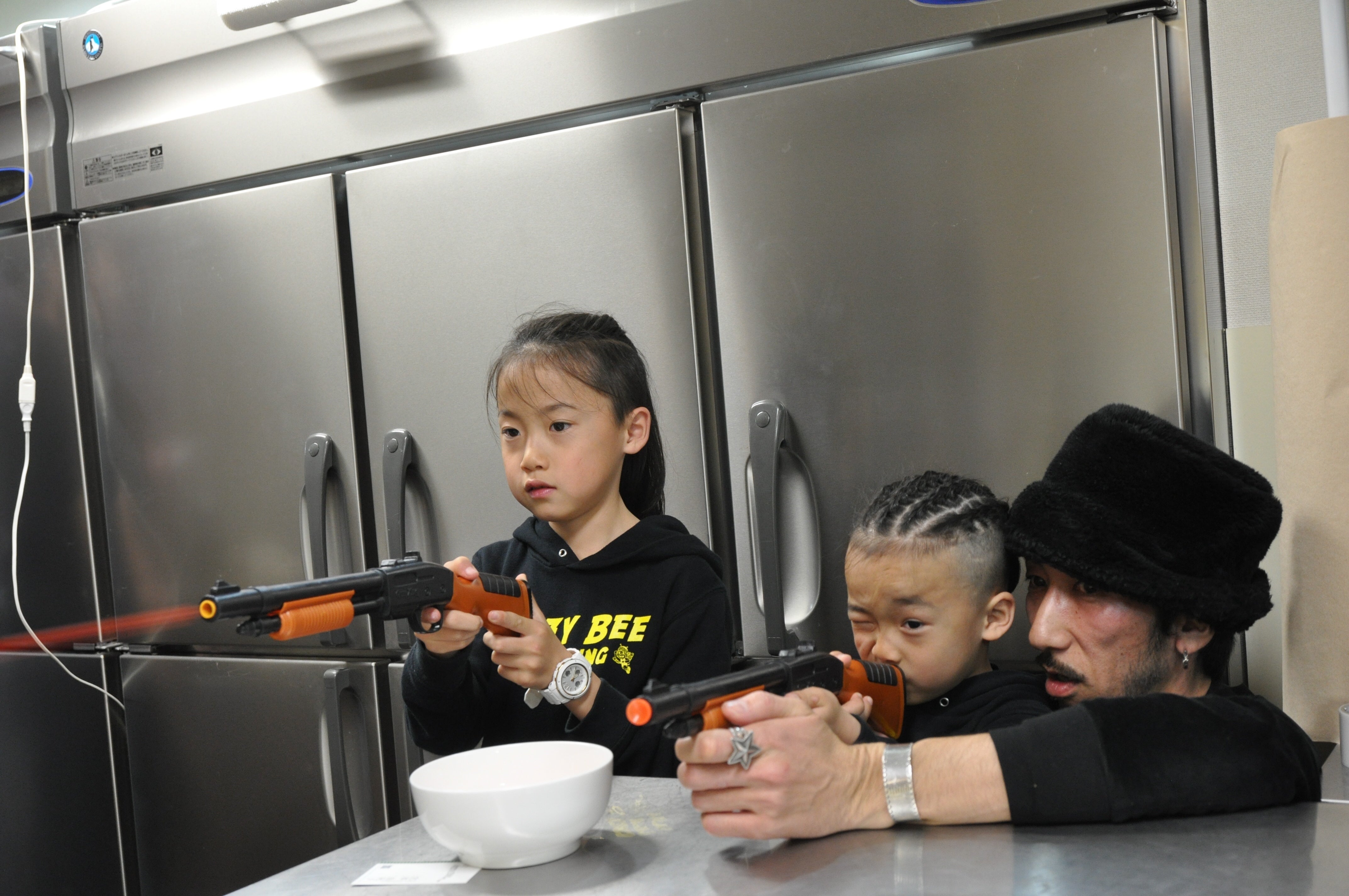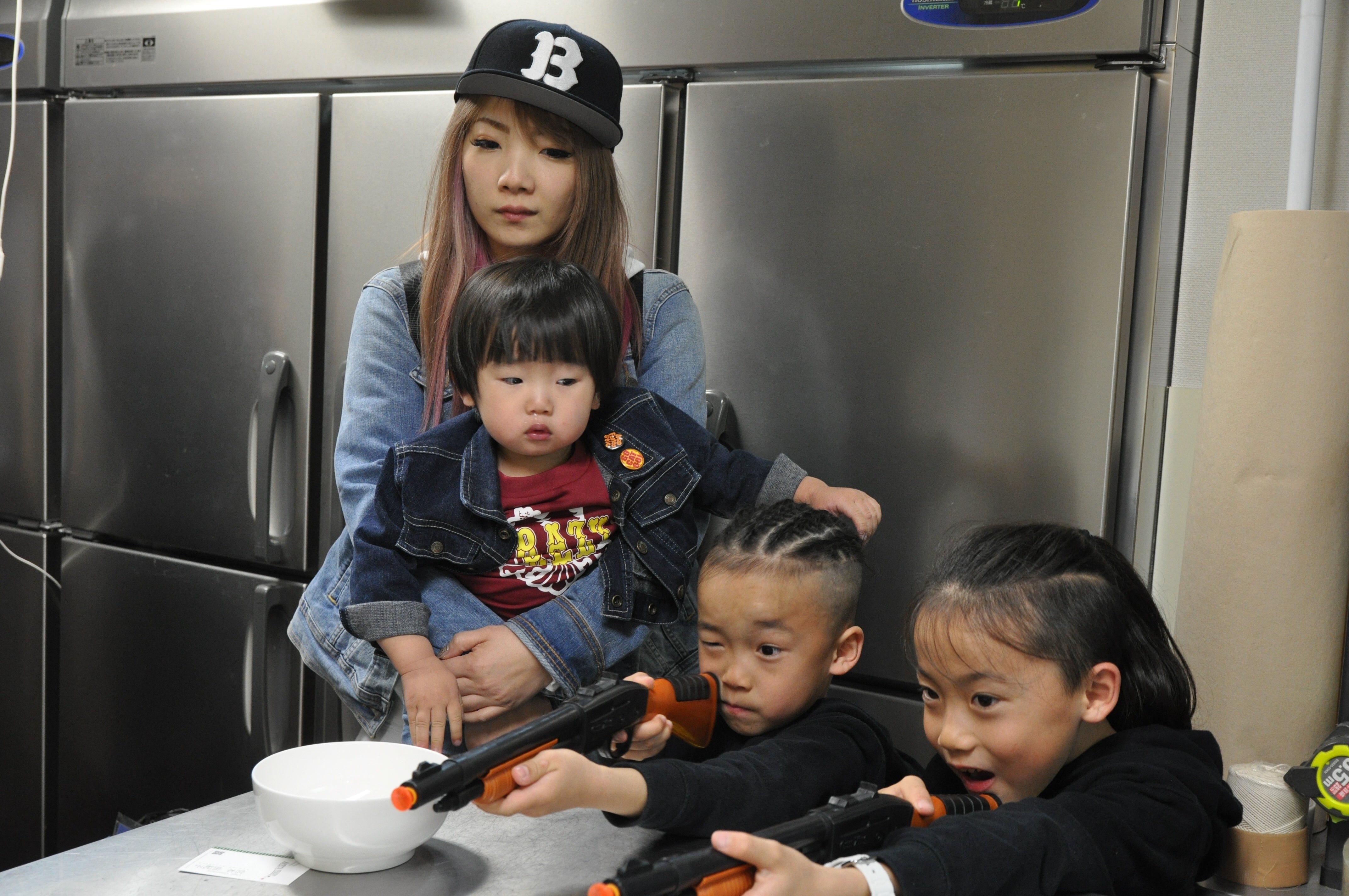 たまたまドットコミュに買い物に来たCRAZY BEE CREW家族。すごいタイミングだ。3兄弟かわいい。