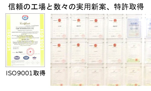 会社の急速な発展に伴い、VSONは管理レベルも向上させてきました。会社のビジネスプロセスに従ってERPシステムを開発。また、品質マネジメントシステムISO9001も取得しています。また、各製品はCE、FCC、FDAなどによって国際的安全基準をクリアしています。