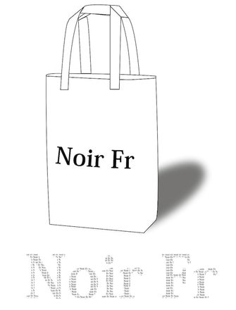 トートバッグの下に載せているロゴのアップ部分を見て頂くと、中にはNoir Frの文字が沢山書かれています。中に書かれたNoir Frの文字部分がご支援頂いた方全員のお名前になるデザインです。