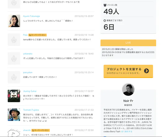 そのような場合○○様からご支援いただきましたという形でパトロンの方の所に名前を載せさせて頂きます。