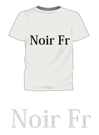 限定Tシャツのデザインが完成しました。 一見シンプルなロゴTシャツですが、ご支援頂いた方全員のお名前を使ってロゴを形成致します。 Tシャツの下に載せているロゴのアップ部分を見て頂くと、中にはNoir Frの文字が沢山書かれています。中に書かれたNoir Frの文字部分がご支援頂いた方全員のお名前になるデザインです。 今回皆様のお力で2015A/WのNoir Frを作りあげる事が出来たという意味合いを込めて、皆様のお名前にてNoir Frのロゴを形成させて頂くデザインに決めました。 ※サンプルデータの為、ロゴの大きさはデザインによって多少変わる可能性があります。 ※皆様のお名前又はニックネームをローマ字にて入れさせて頂きます。