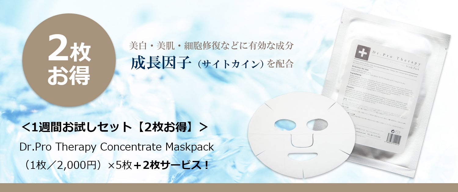 Dr.pro Therapy Concentrate Mask Packの主成分である「成長因子(サイトカイン)」は、「美白・美肌・細胞修復」などに有効な成分でアメリカのCTFAより承認を得ており、安全性が認められています。