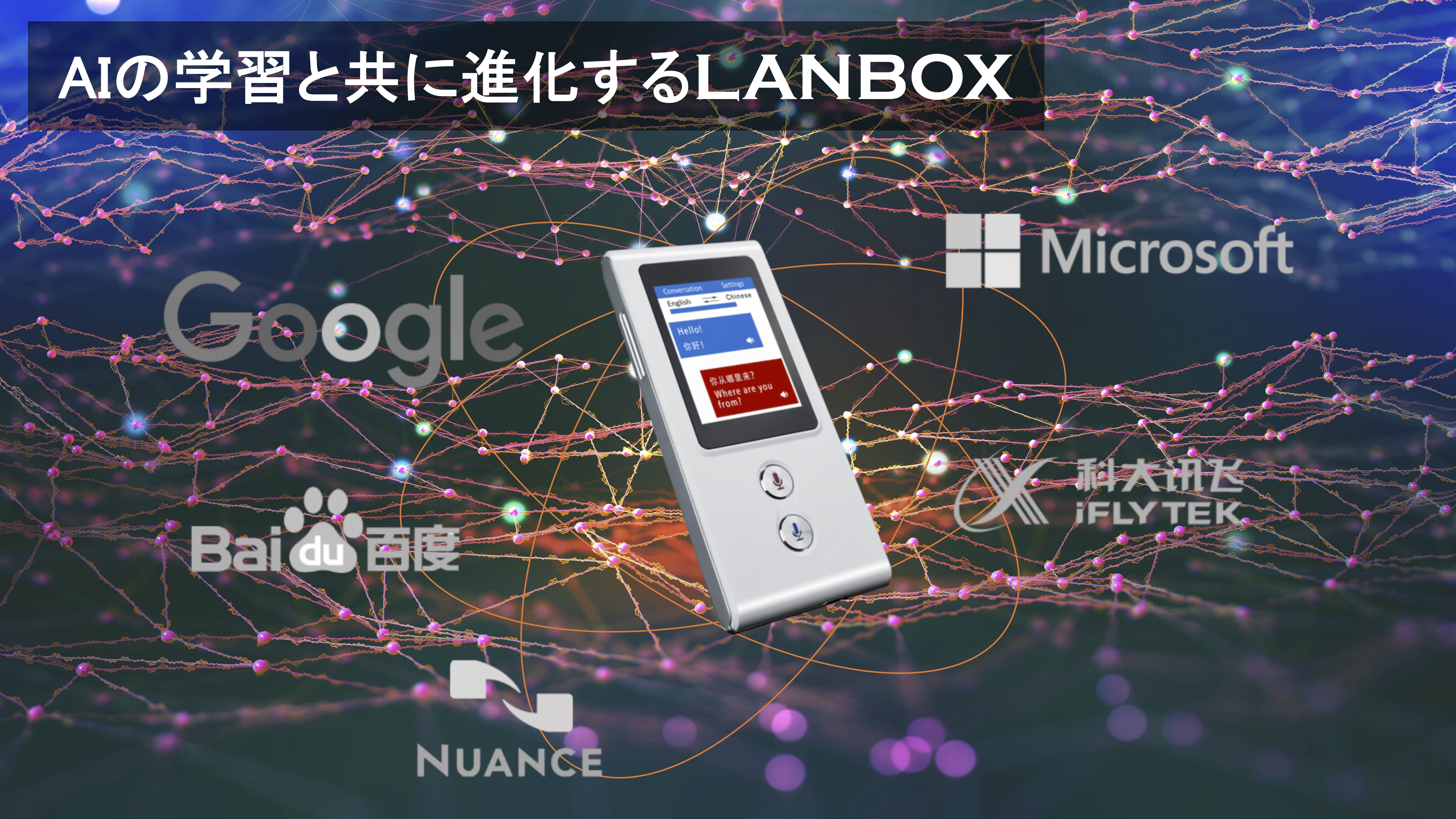 「LANBOX」は、世界中の主要エンジンに準拠しています。様々な言語や方言、年齢性別などによる話し方の特徴など、世界中のビックデータから学習し続けるAIに合わせて、「LANBOX」は定期的にバージョンアップされます。アップデートをすればいつでも最新のバージョンのAIトランスレーターとしてご使用いただけます。アップデートできない従来の翻訳機とは歴然とした差があります。