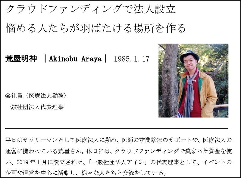 クラウドファンディングで法人設立。悩める人たちが羽ばたける場所を作る