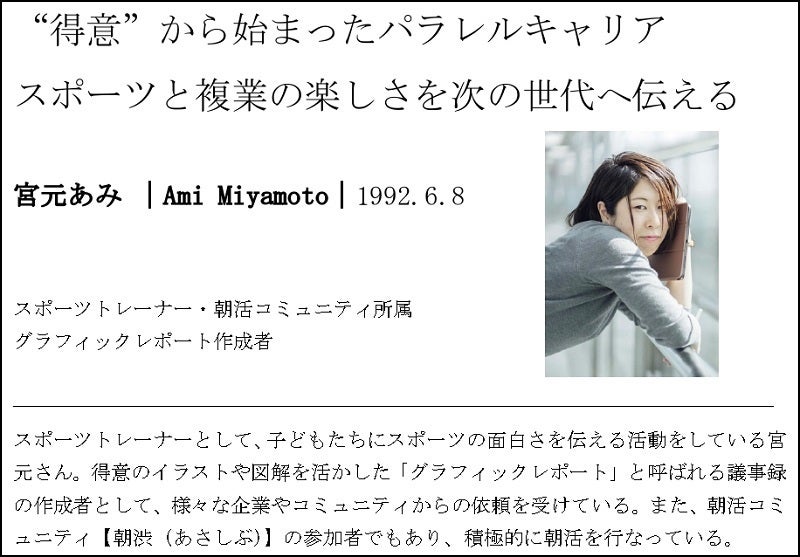 スポーツトレーナーとして、スポーツの面白さを伝える活動をする傍ら、グラフィックレポートという議事録の作成を手掛ける宮元さん。
