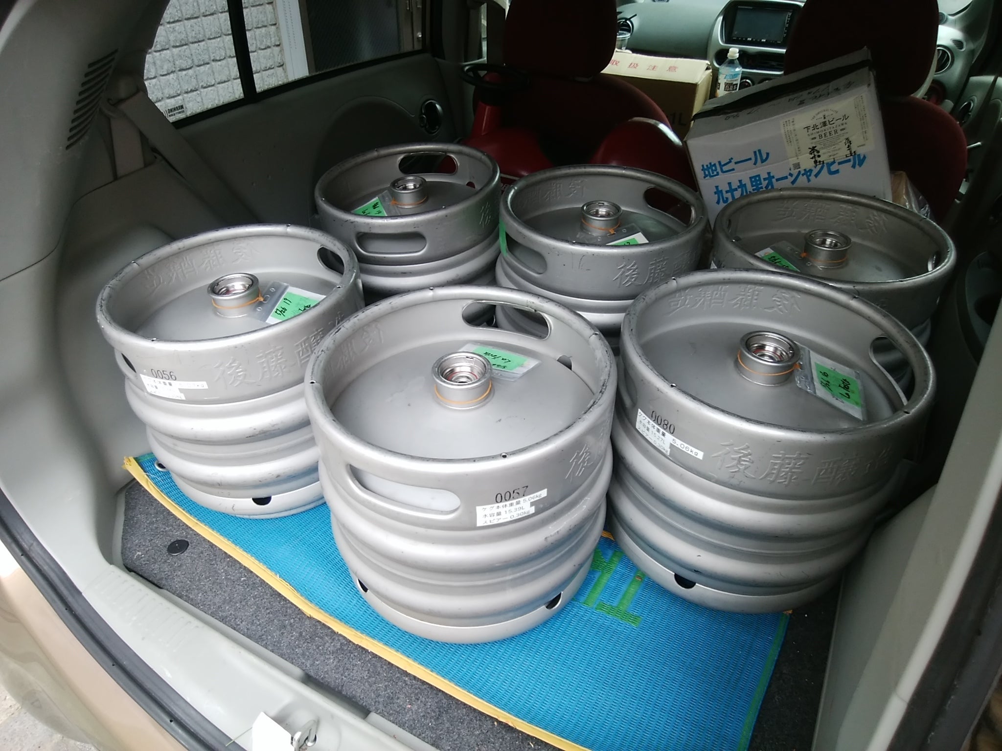 15リットルに樽自体の重さ足してせいぜい20キロ。ボトルが1リットルなので1.5キロとして、