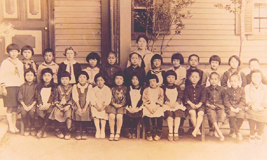 小学校時代のカレリアさん(上段左から4番目)「私たちは市内中心部の流川町に住んでいました。家の周りには大きな池があって美しい鯉がたくさんいました。とても快適な生活でした」(カレリアさん)