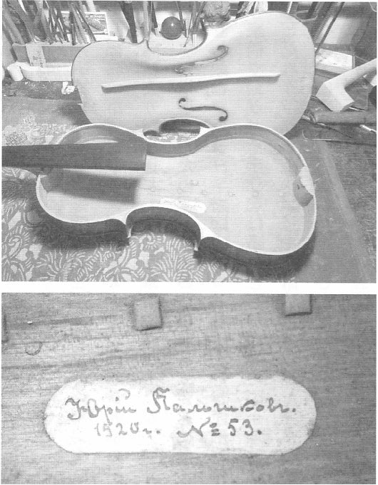 ヴァイオリンは1900年頃のドイツの機械製で比較的安価なものでしたが、楽器の鳴りをよくするために板の厚みが調整してありました。ラベルには「ユーリ・パルチコフ