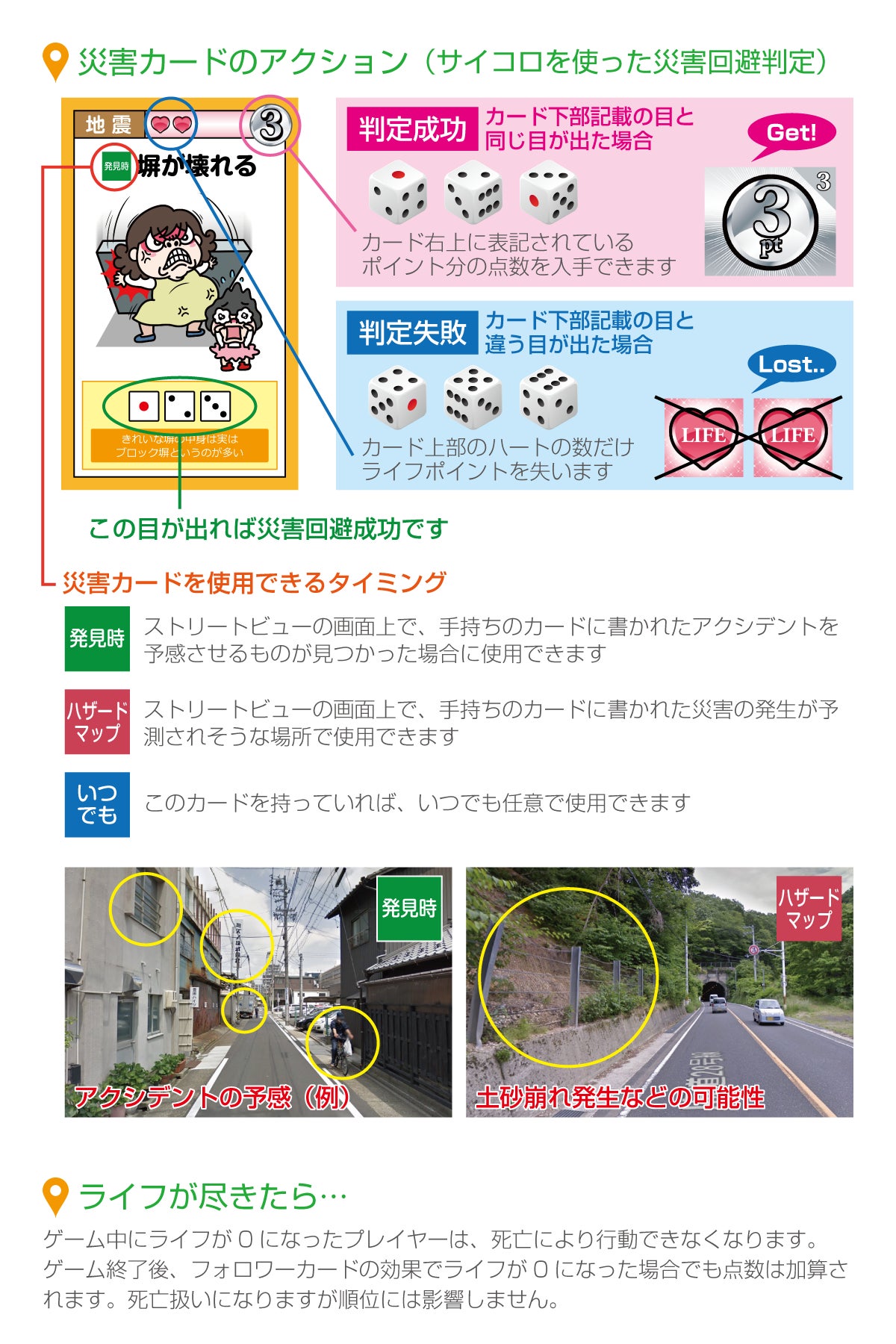 ハザードマップがゲームの攻略本にもなる、画期的な防災カードゲームです。