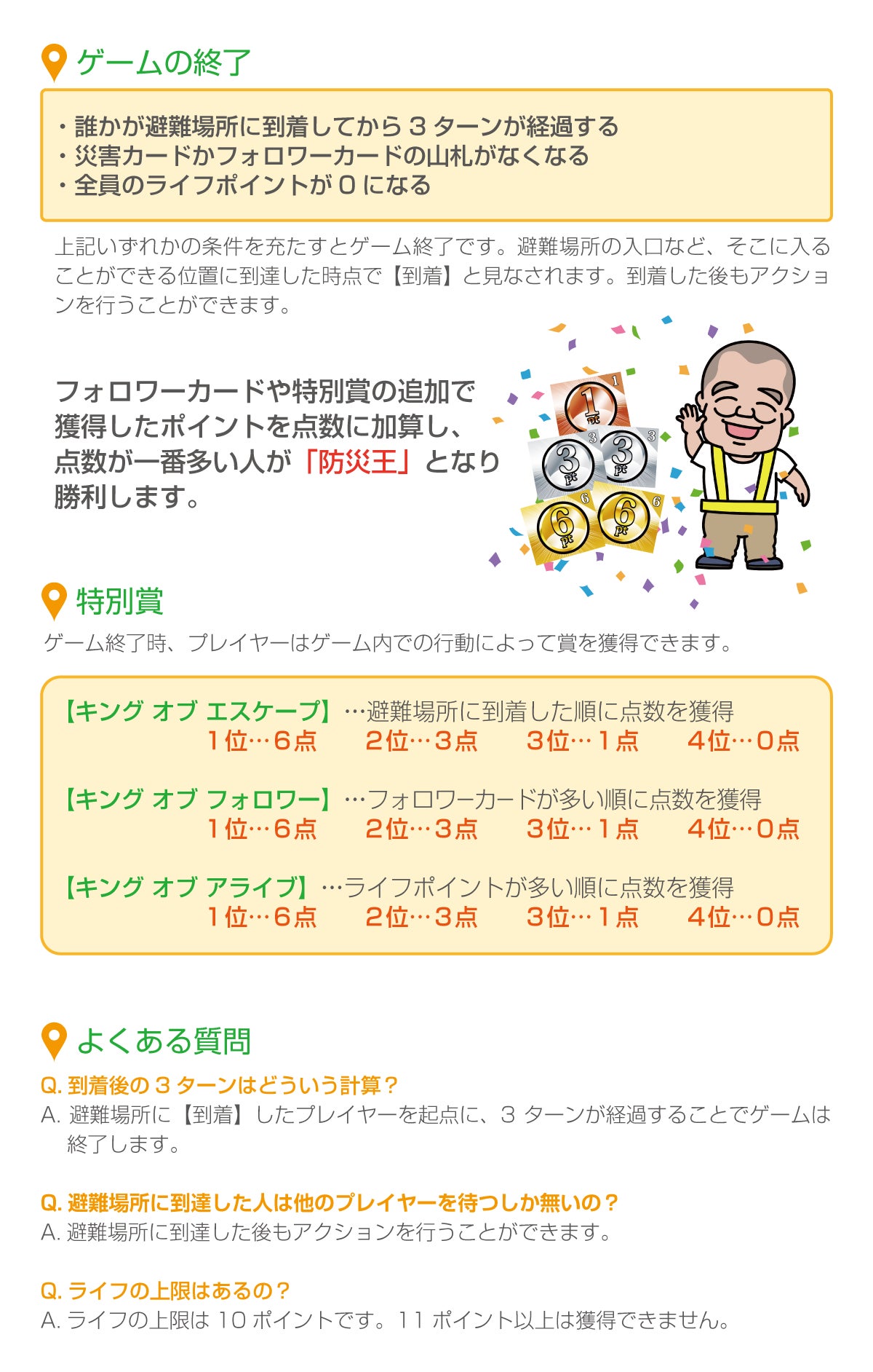 避難所にむかわずにゲームに勝つことも可能、災害や地域に合わせた戦略が必要なゲームです。
