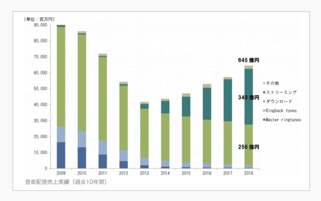 頼みのダウンロード販売は、頭うち。世界の潮流から見ても間違いなくストリーミング、サブスクリプション(定額課金)サービスが、メインストリームの役割を果たすはずなんですが、CDの頃は8cmシングルは、¥1000からマキシサイズの¥1200、ダウンロードでは、だいたい一曲¥200が相場(権利者若しくは、レーベルへは、CD、ダウンロードともその半分くらいの収益)でありますが、サブスクリプションの場合、アグリゲータ経由で1再生だいたい¥1円位の収益しか原盤制作者には戻らないので、アーティストや実演家には、多くてその1/10、少ないと1/100しか実入りは無いのです。