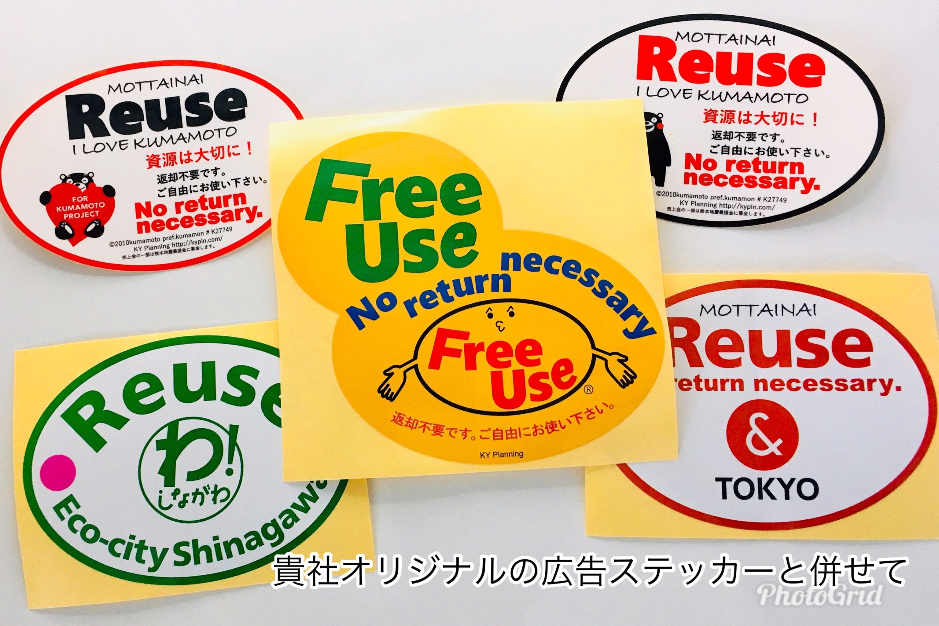 フリーユースステッカーは現在基本セットの他、PRステッカーが「くまモン(赤)・くまモン(黒)・&TOKYO・しながわ」の4種類あります。更に今回は「フリーユースエコバッグ」もテスト的に製作しリターンとします。