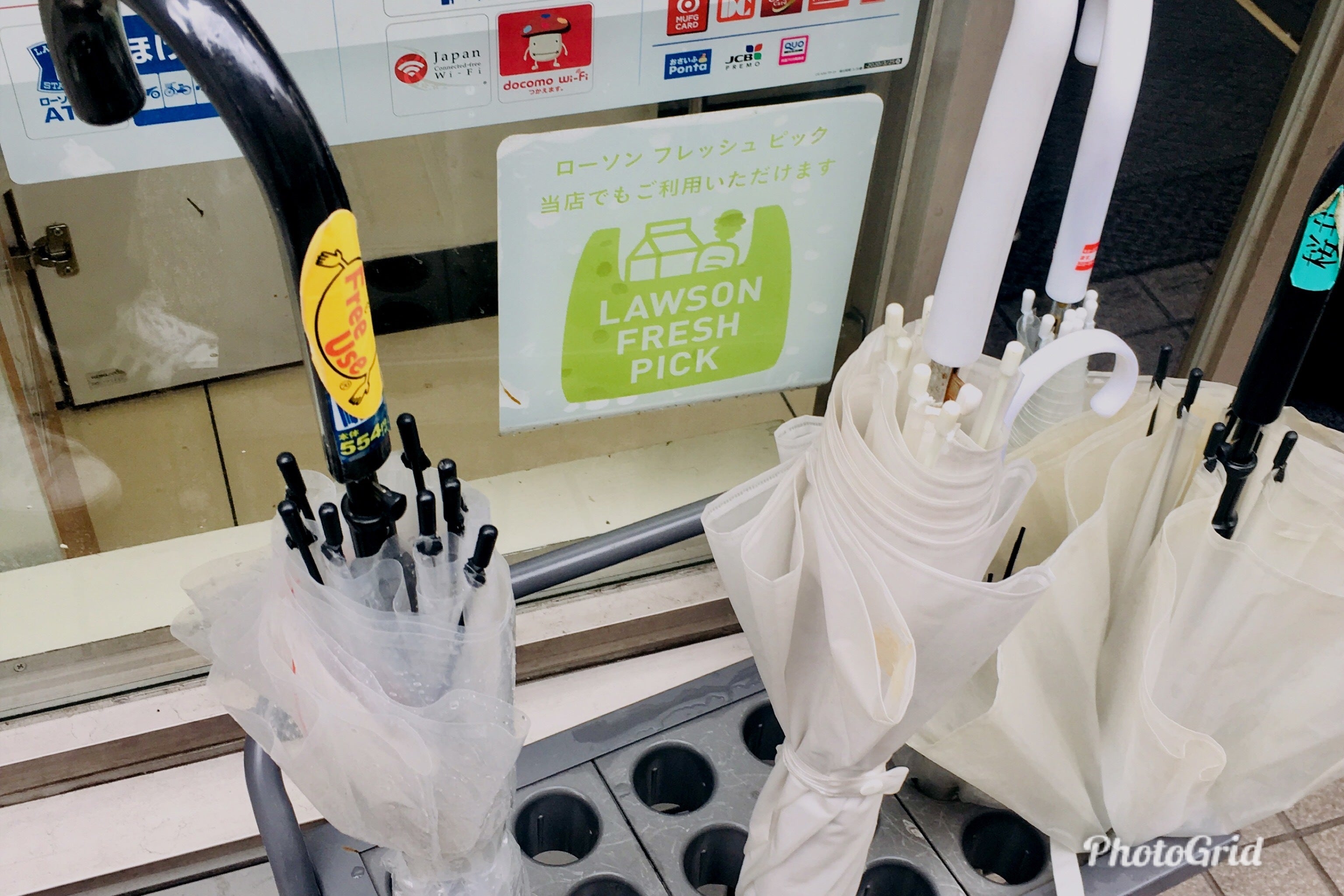 「店舗では忘れ物の傘が大量に余ってるんはず!捨てるならくれないかな~」と心の中で思いつつ、百均やコンビニで傘を買う