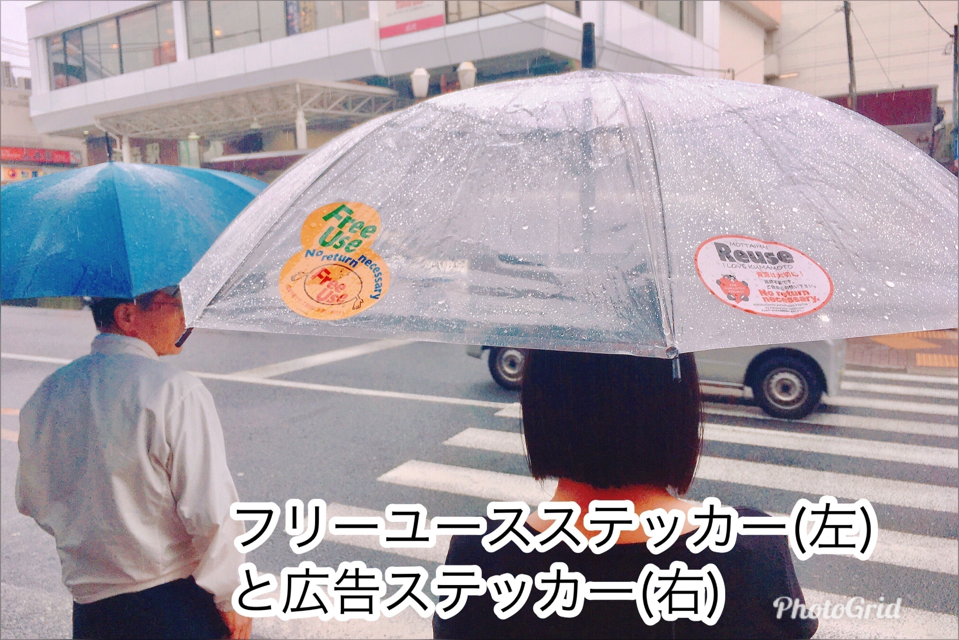 ②広告協賛者の依頼にて広告ステッカーを作成、フリーユースステッカーと共に傘に貼り付け配布