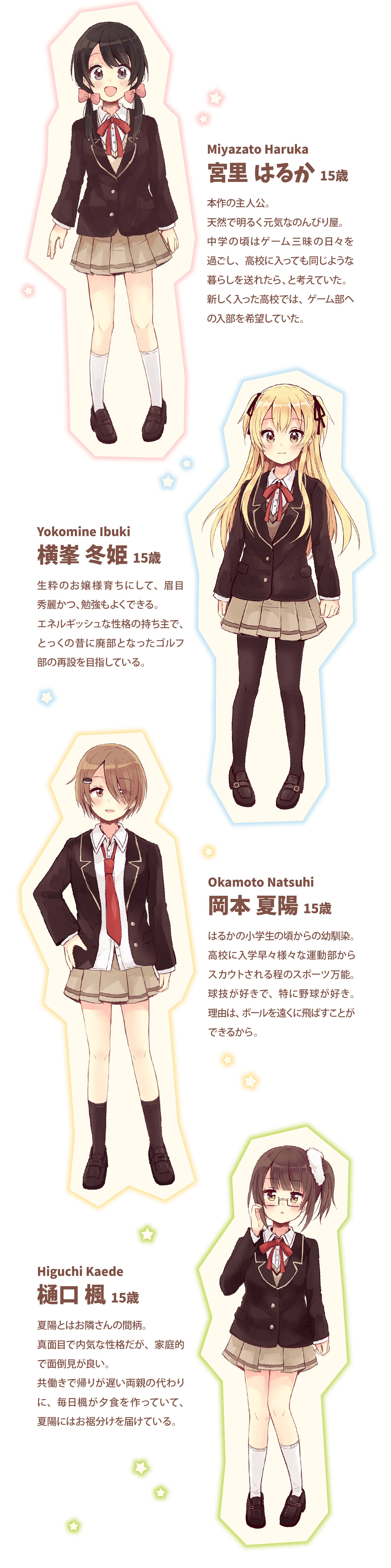 中学時代はゲーム三昧だった主人公・はるかは、高校に入学したら、ゲームができて美味しいお菓子を食べさせてくれる部活に入りたいと思っていた。新しく入学した高校にはゲーム部はなく、もちろん、美味しいお菓子を食べさせてくれる部活もあるはずがなかった。