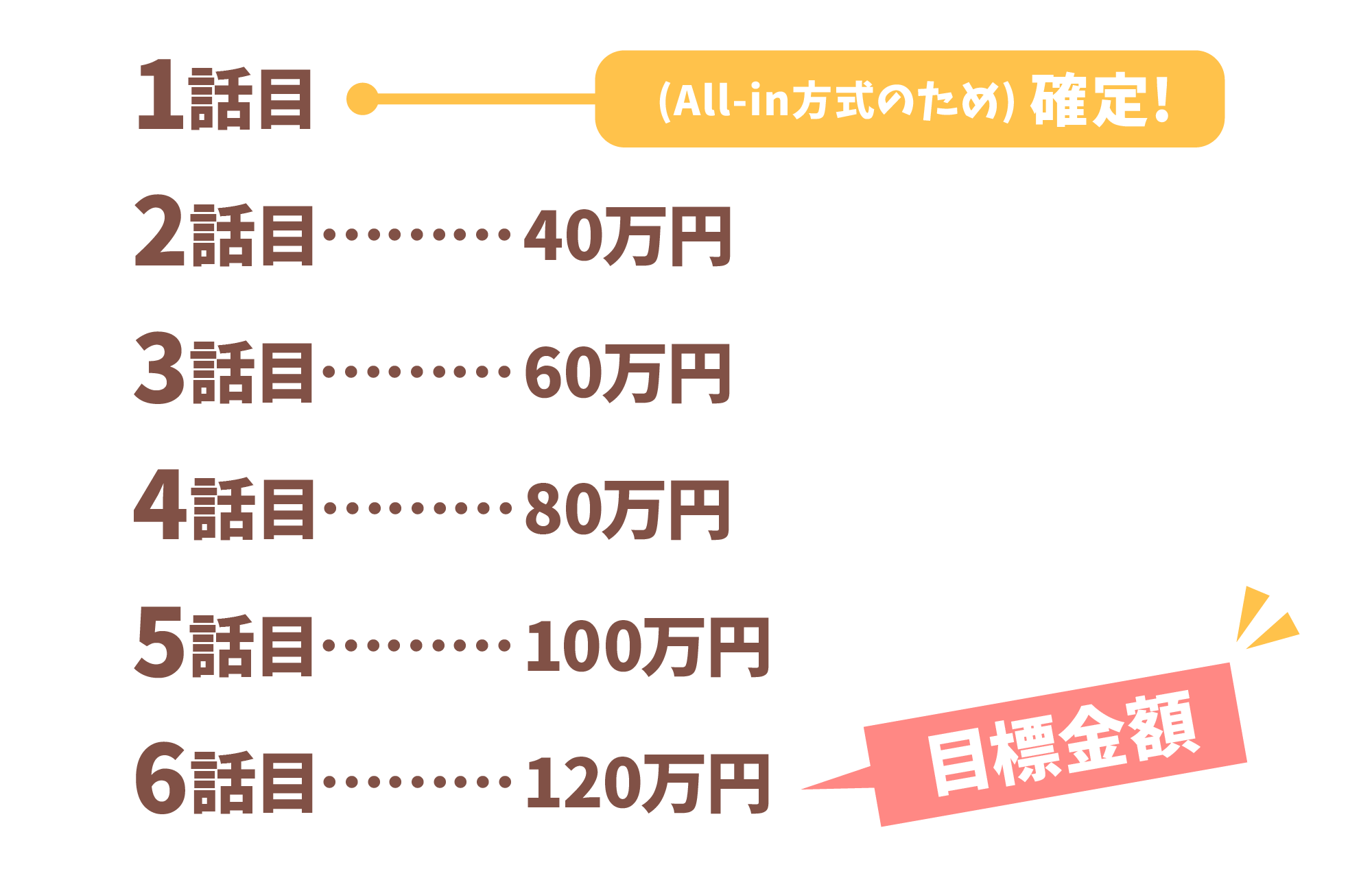 ・CF手数料……目標金額の18.36%(1話辺り、約6万6千円)
