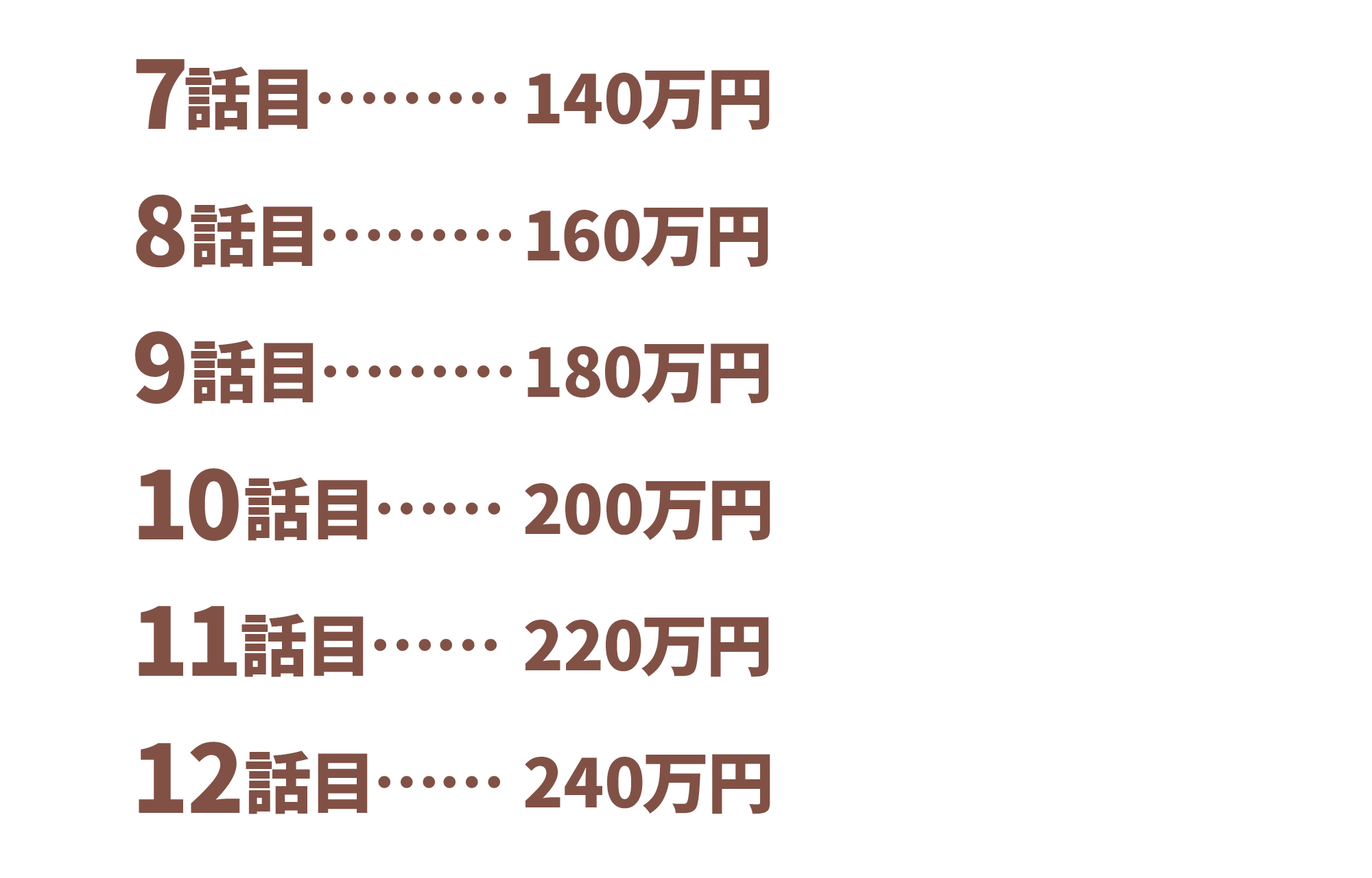 以上を合計し、1話辺り約20万円として以下計算させていただいています。