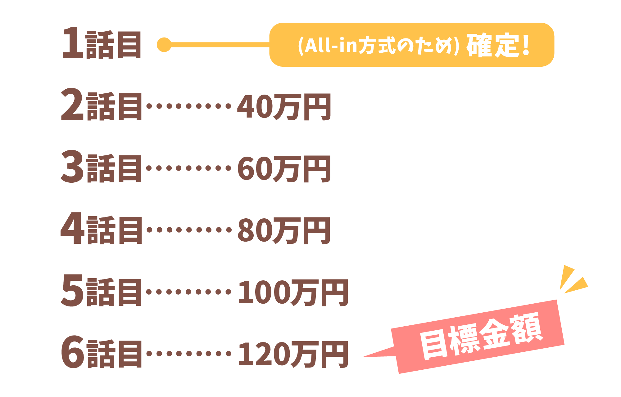 ・CF手数料……目標金額の18.36%(1話辺り、約6万6千円)