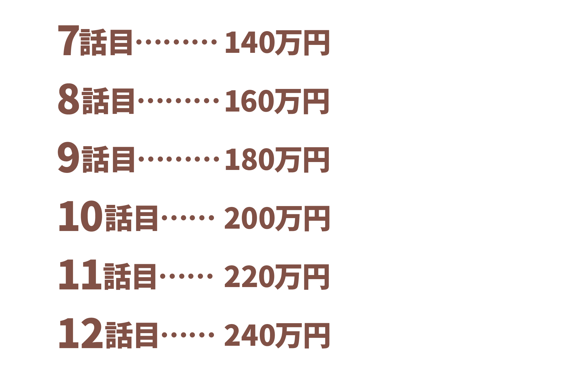 以上を合計し、1話辺り約20万円として以下計算させていただいています。