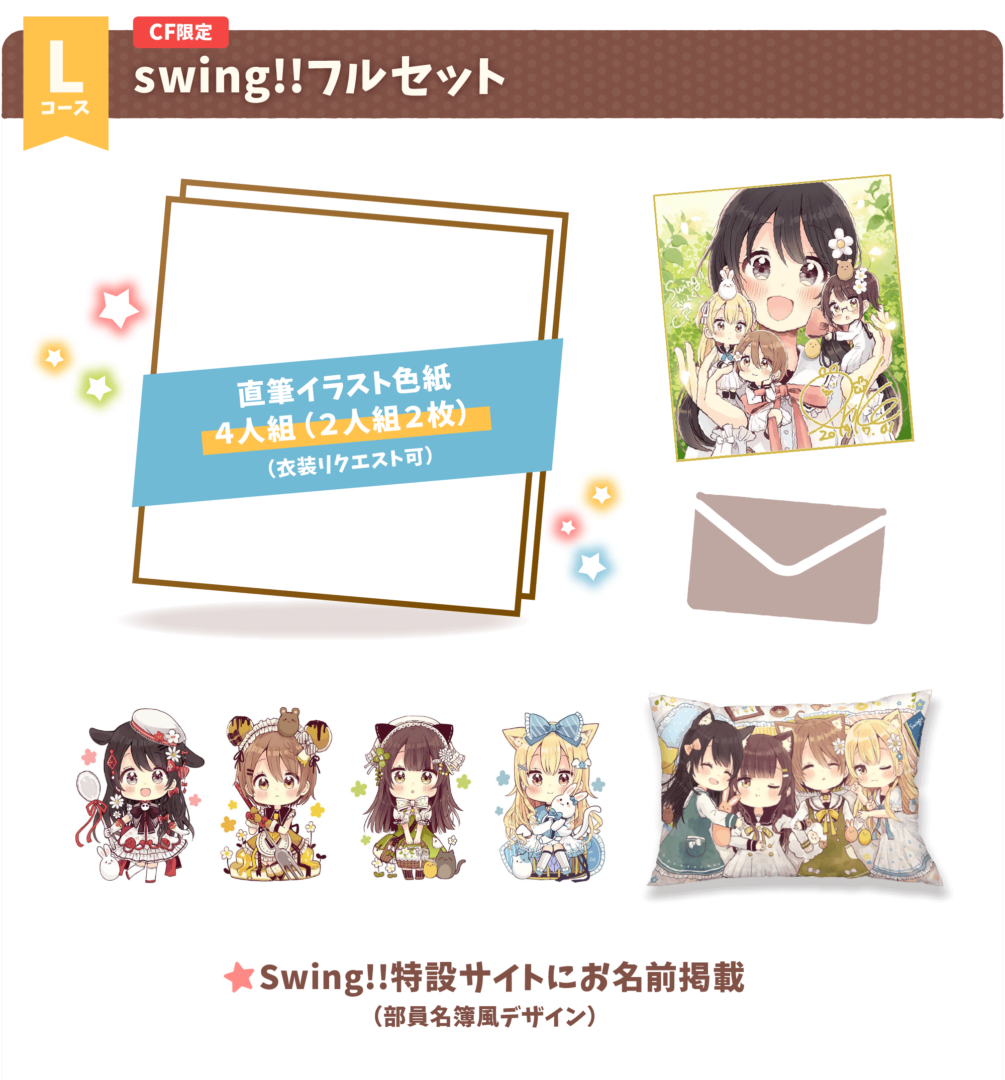 【H】[CF限定]swing!!描き下ろしグッズ全セット……20000円(15限)