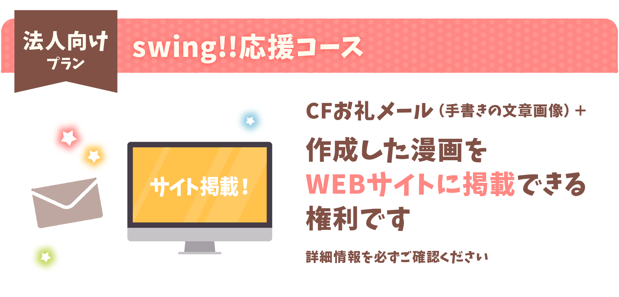 『swing!!』漫画制作プロジェクトの目標金額達成を祝して、ご法人向け様のプランを追加させていただきました!