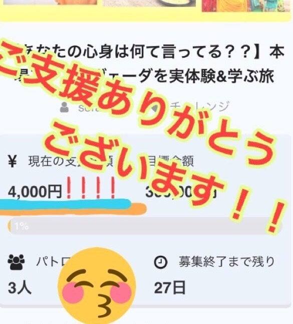 スタートしてから1日がたちました!\\初日に4000円//初日からご支援いただき、めちゃくちゃ嬉しいです!本当にありがとうございます!!ドクターから学ぶこのプロジェクトを通して、より多くのことを学びとり、それを還元していけるよう頑張ります!!