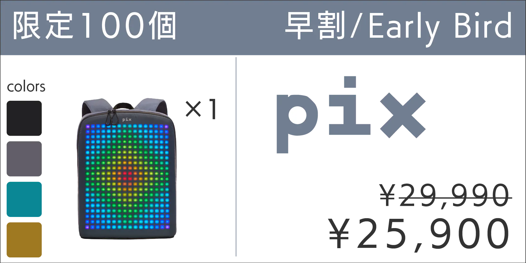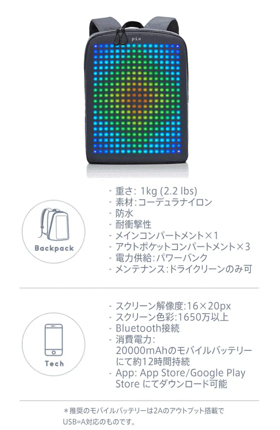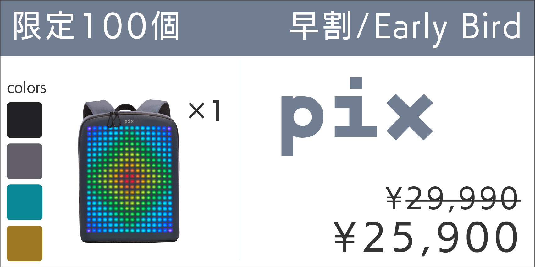 PIXはiOS/Android対応のアプリで操作可能なバックパックで、ドットスクリーンを搭載し、アニメーション表示や8bitゲームをプレイできるデジタル要素を盛り込んでいます。海外のクラウドファンディングで3000万円以上の支援を集めた注目のバックパックが日本に上陸です。
