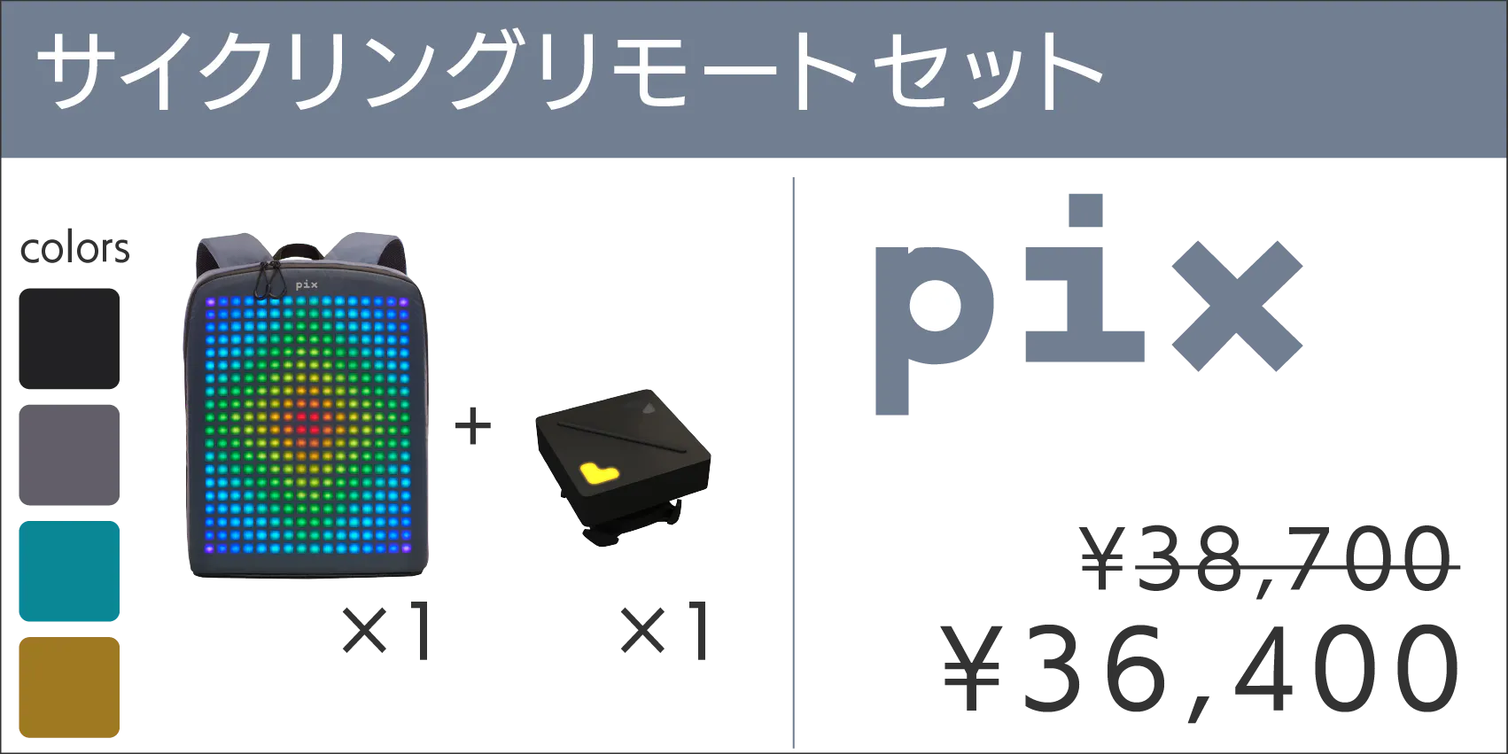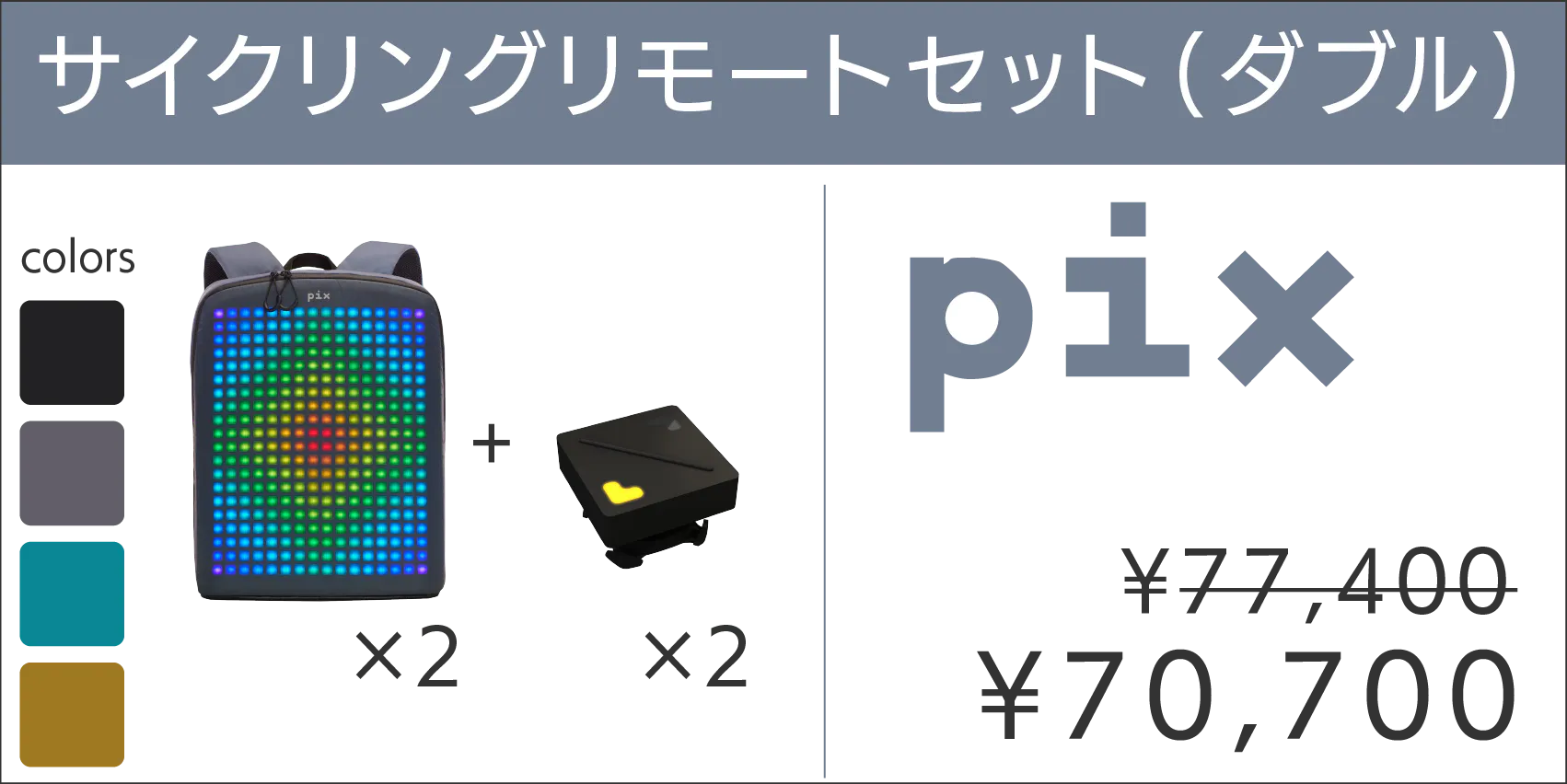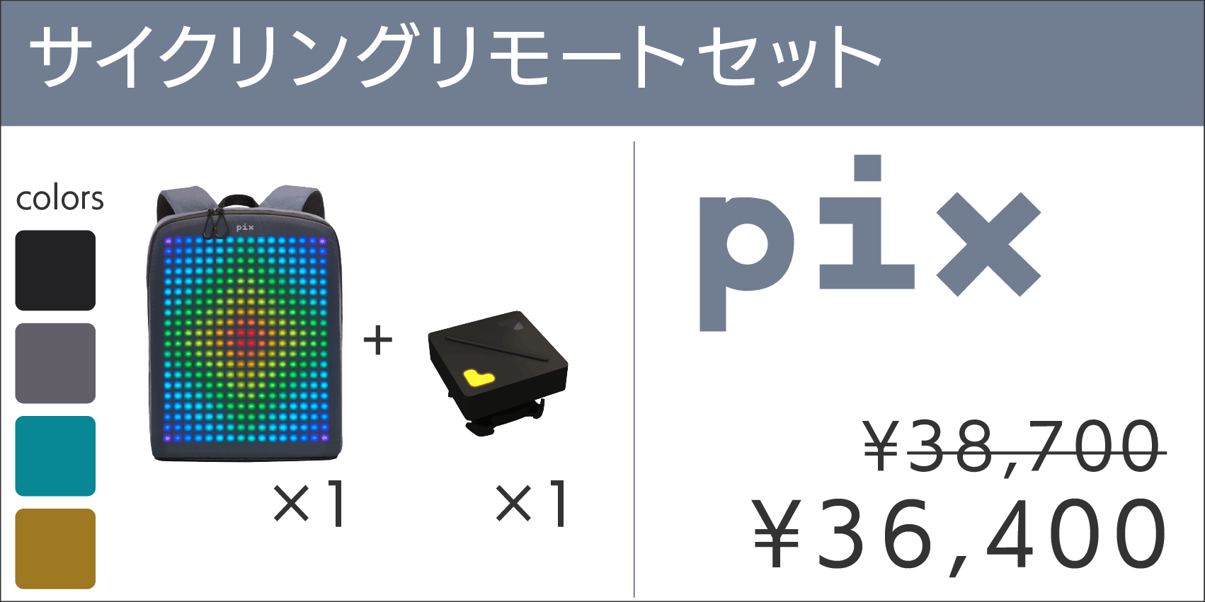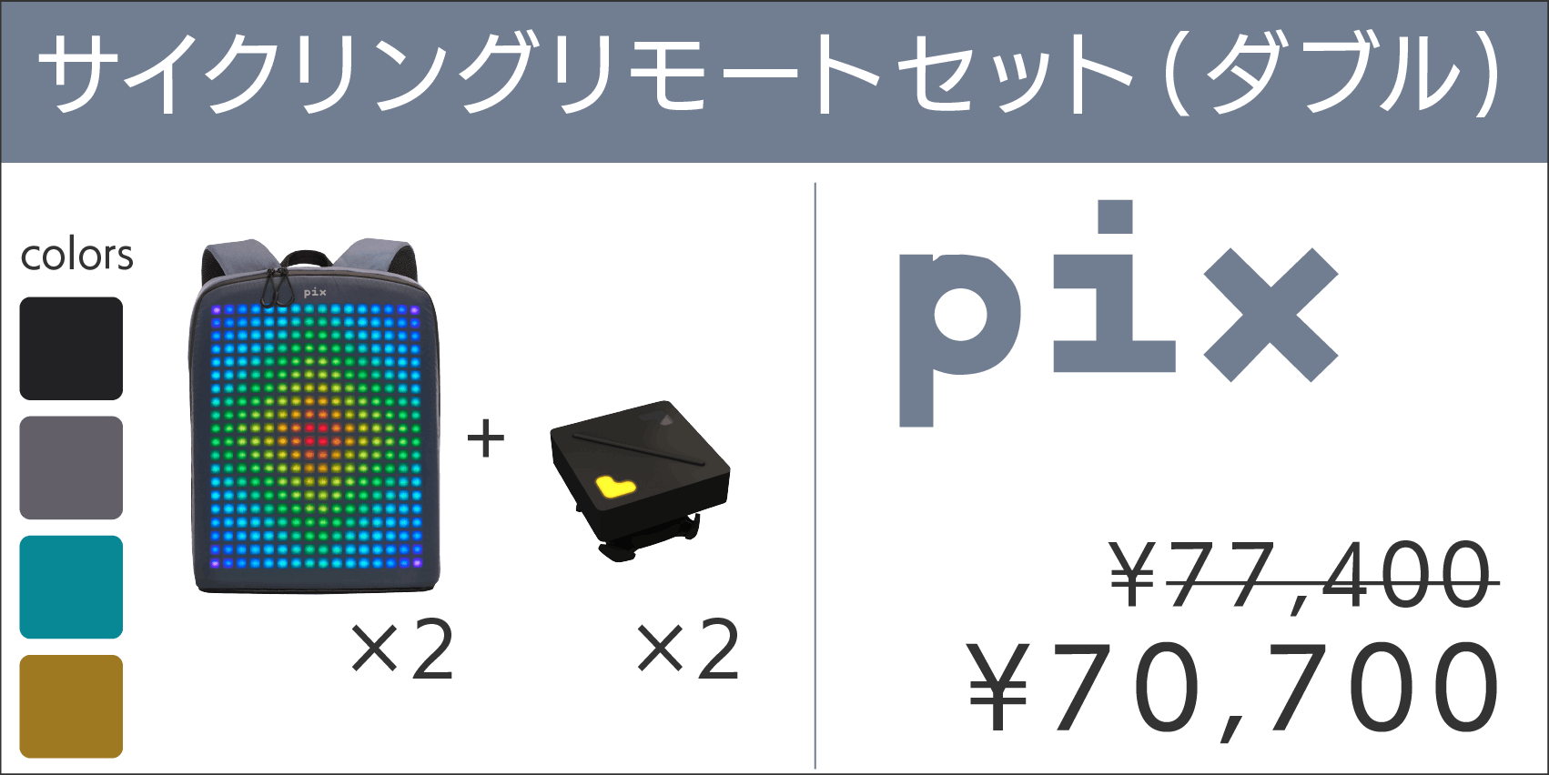 PIXは特に夜道のサイクリングと相性抜群。何かしらPIXのディスプレイに表示させておくだけで反射板などの役割を果たします。また、サイクリング時の利便性をさらに高めるサイクリングリモート付きのリワードも用意しました。進行方向を表示させたり、停止するサインを表示させることができます。夜道でバイクに乗られる方にはおすすめです。