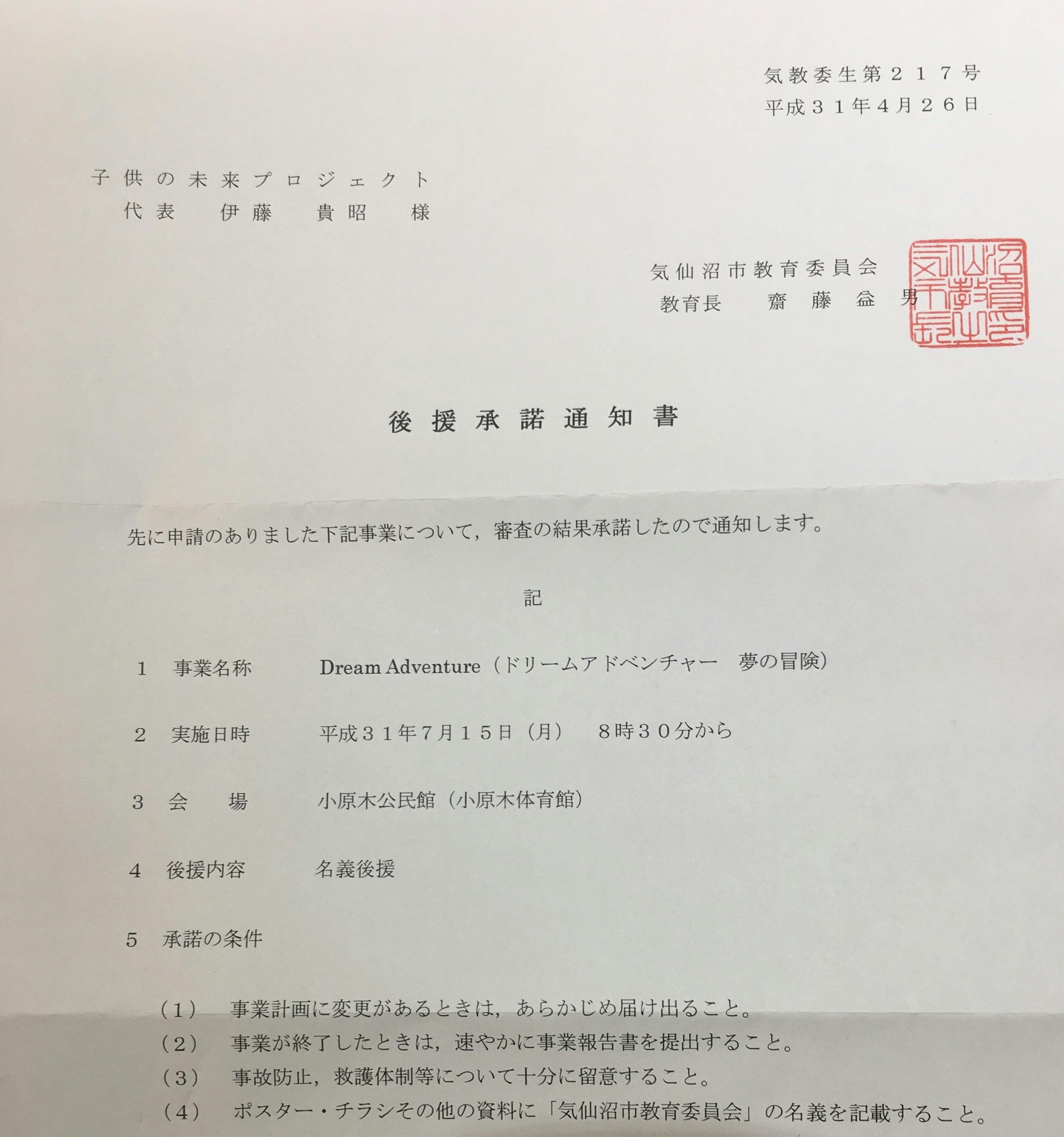 2019/05/07 14:52以前から申請させていただいておりました気仙沼市教育委員会の後援を承諾していただけることとなりました!教育委員会の方々の協力なくして市内の小学校、中学校へのアンケートやアナウンス、パンフレット配布なではできないためものすごくありがたく、何よりホッとしております!!もちろんまだまだスタートラインに立ったばかりと変わりませんので、より一層楽しく真剣に進めてまいりたいと思います! もっと見る子供達の先生!協力していただきます方をご紹介させていただきます!