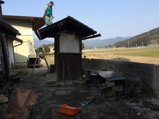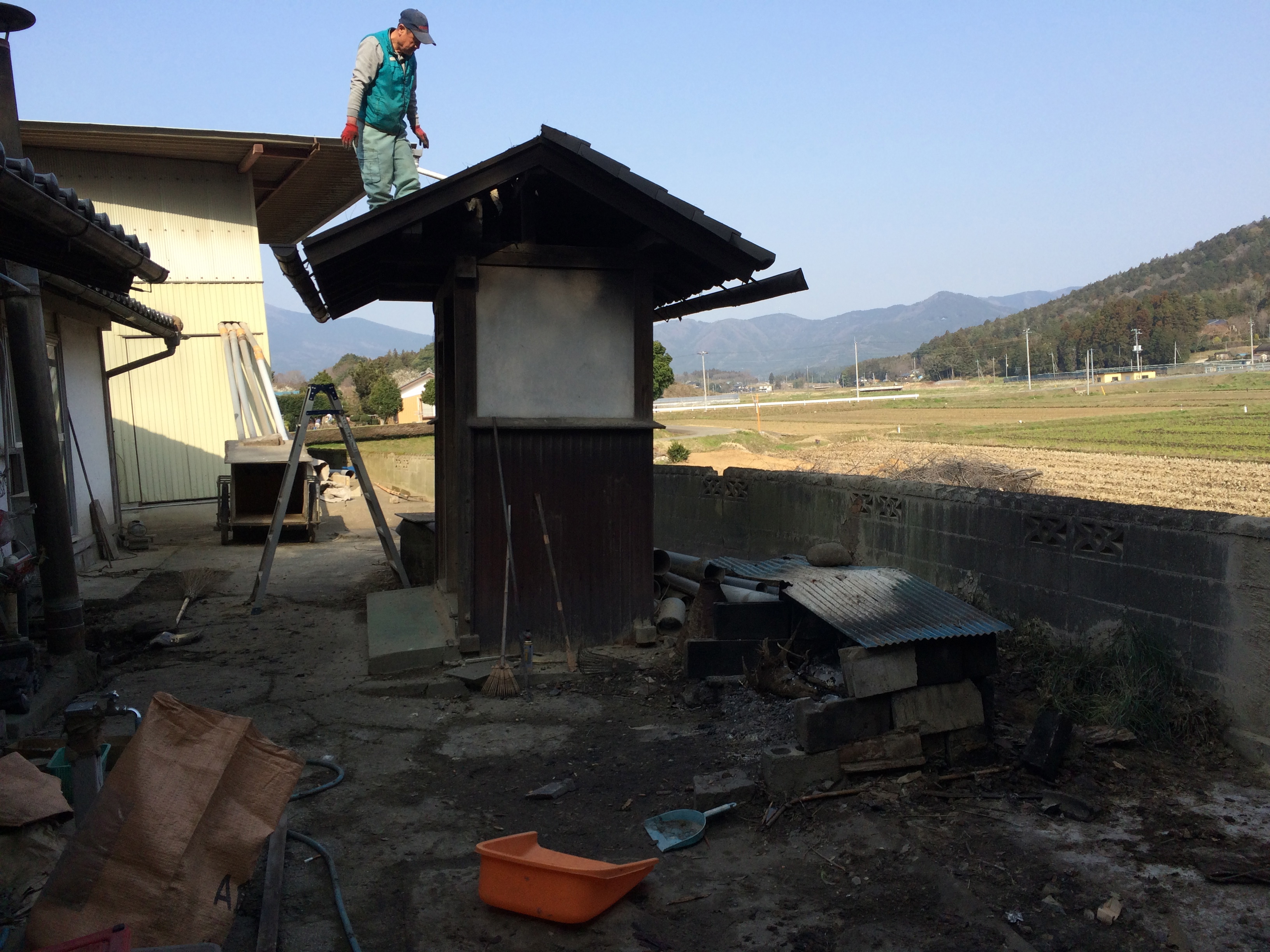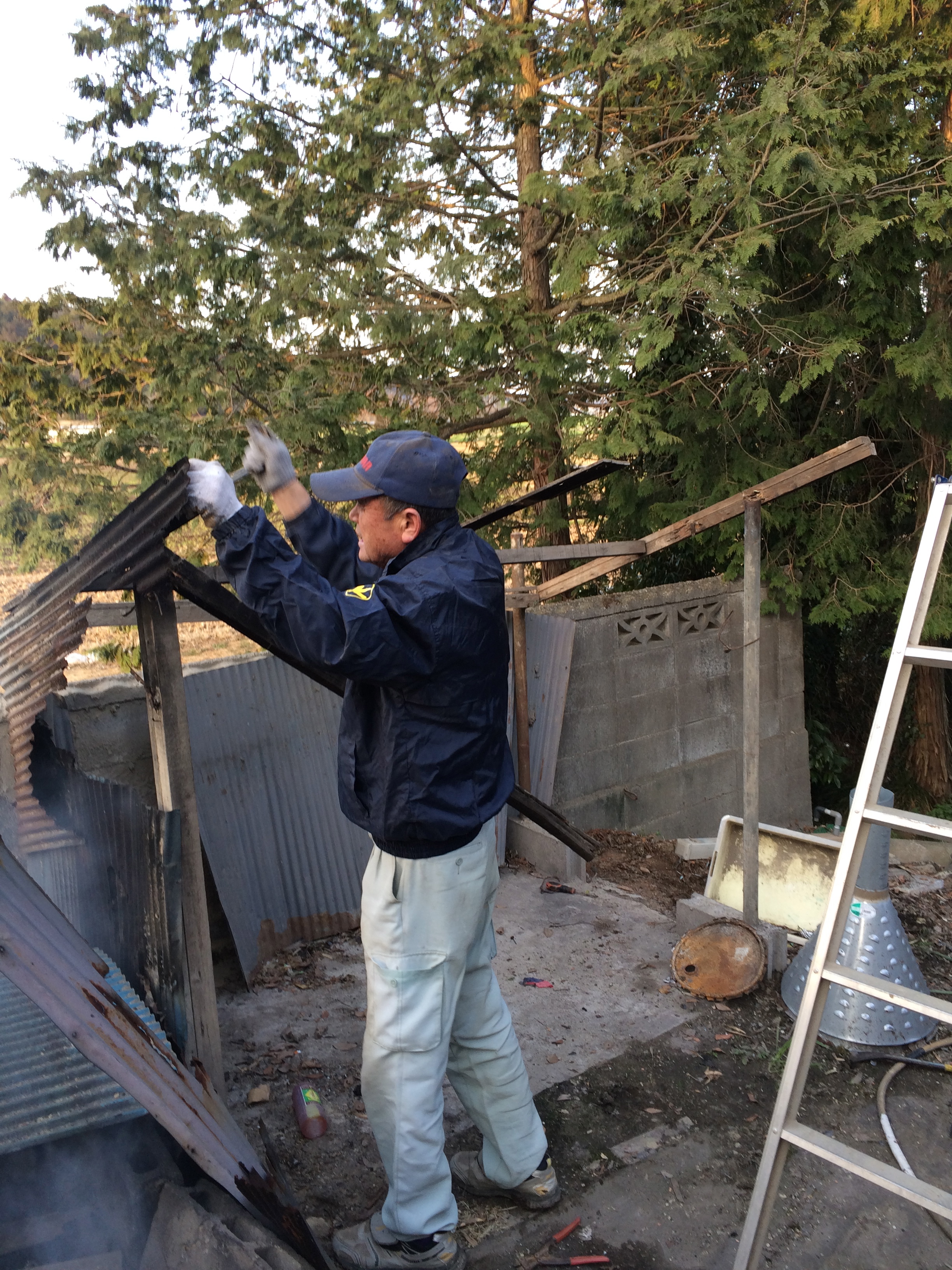 古民家裏の塀の取り壊しに邪魔ということ薪置き場壊しから!