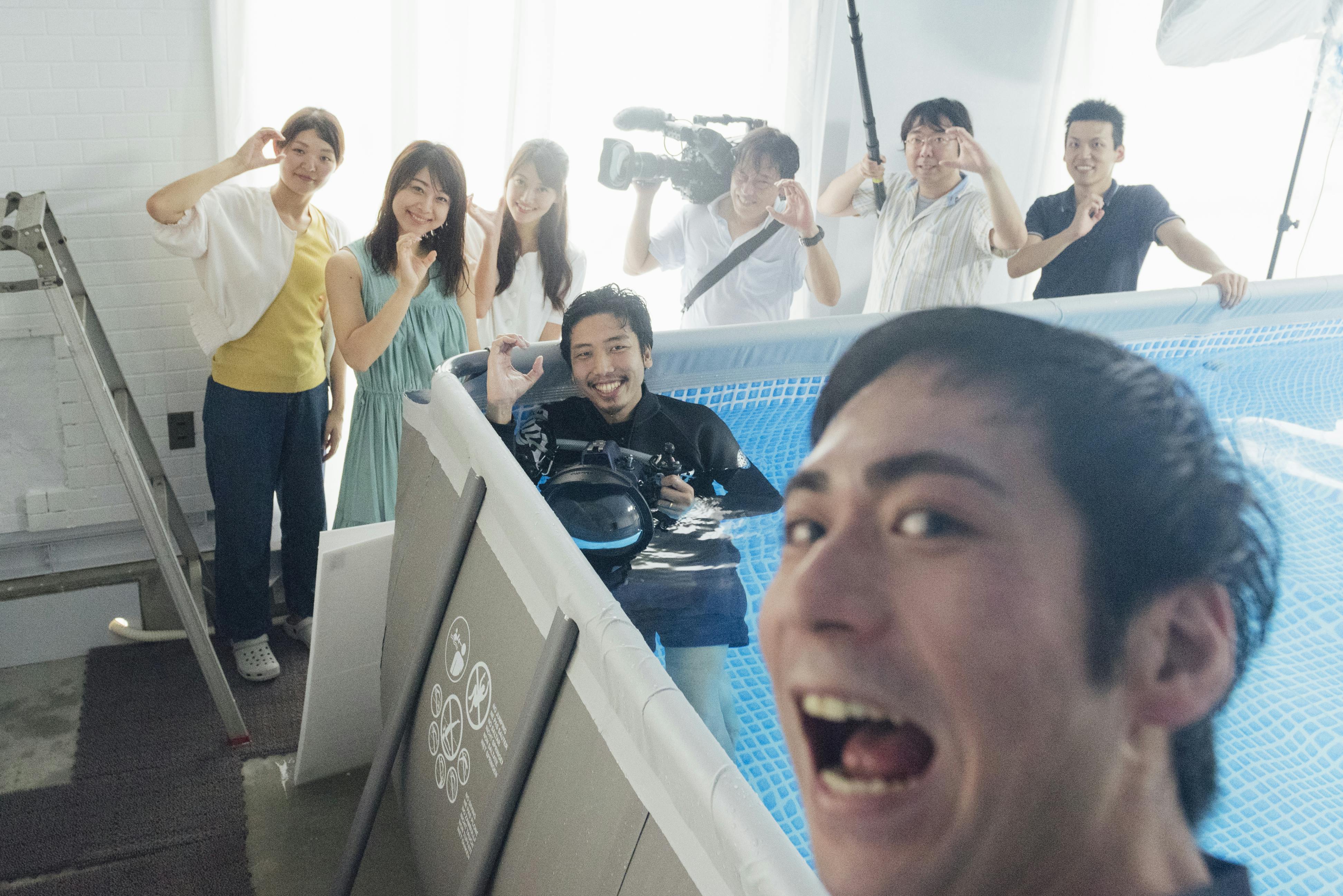 現在は色々と探していく中で見つかった芦屋にある個人邸宅の屋外プール、大阪にあるダイビングプールの2か所でプールを貸切して撮影しています。