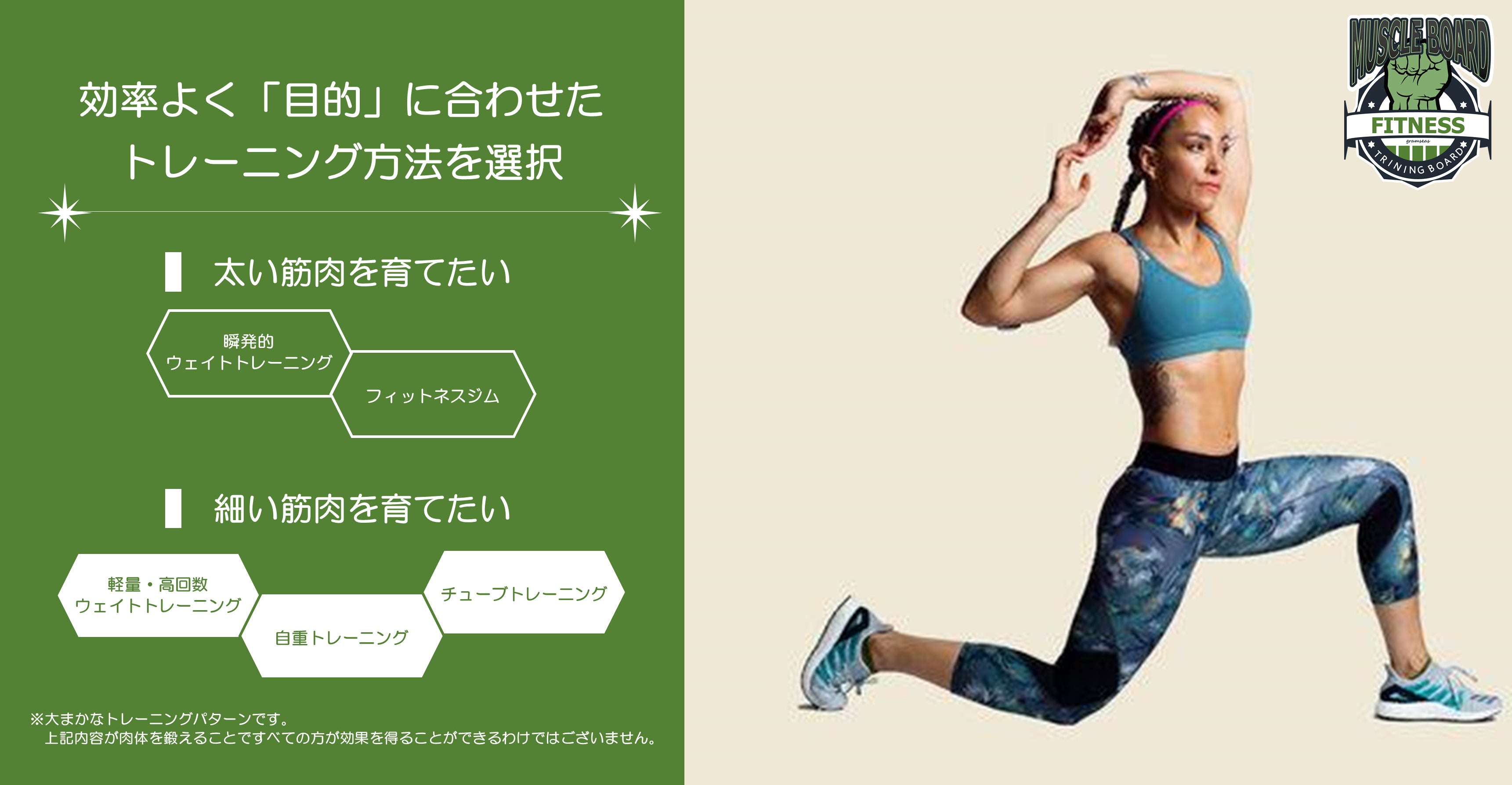 コンパクトなのにパワフルなマッスルボードさえあればOK。小さな筋肉から、大きな筋肉群までをターゲットにした、コンパウンドエクササイズを完璧に行うことができ、ユーザーの目的に応じた様々なトレーニングが可能に!