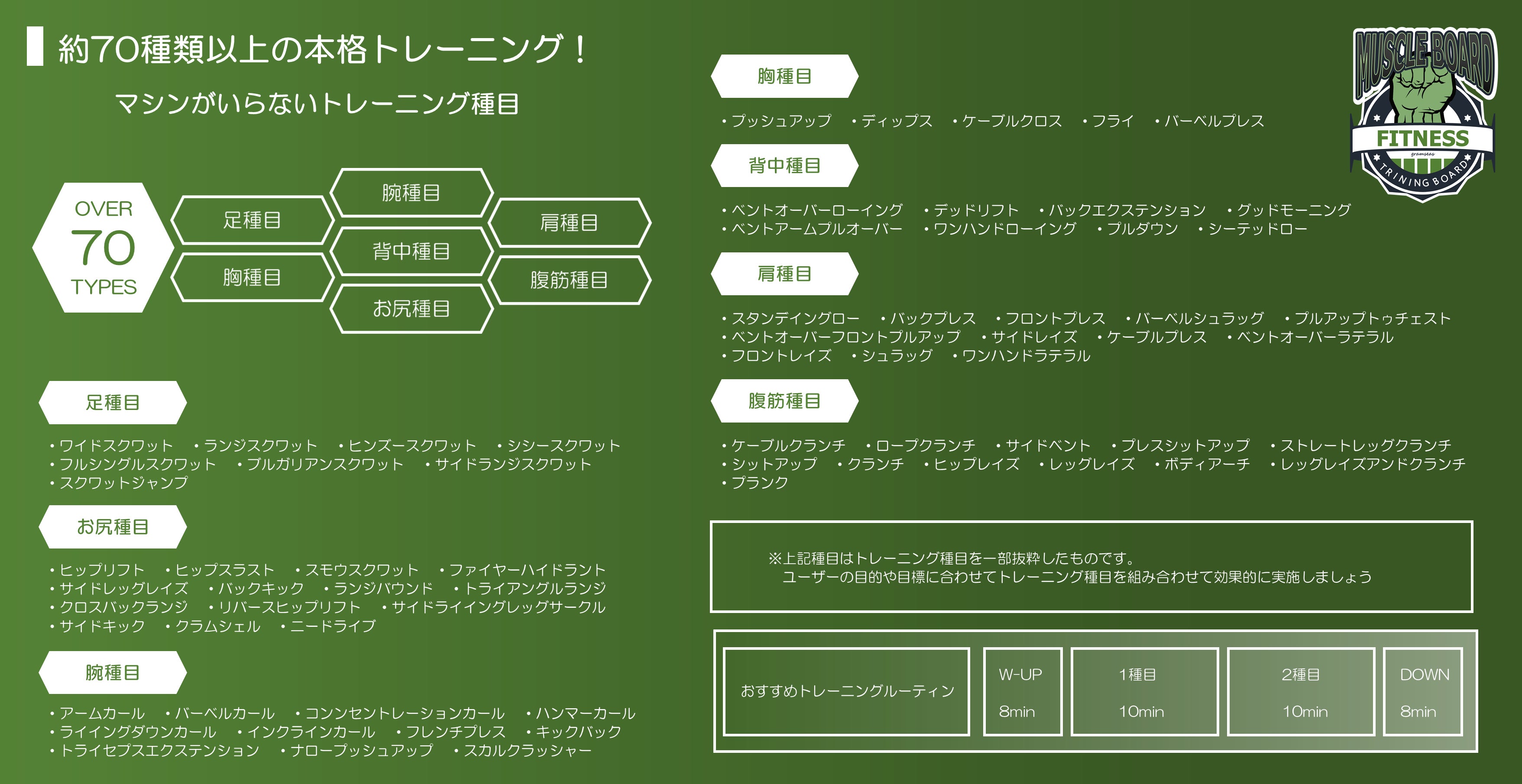 70種類以上のトレーニングが可能!