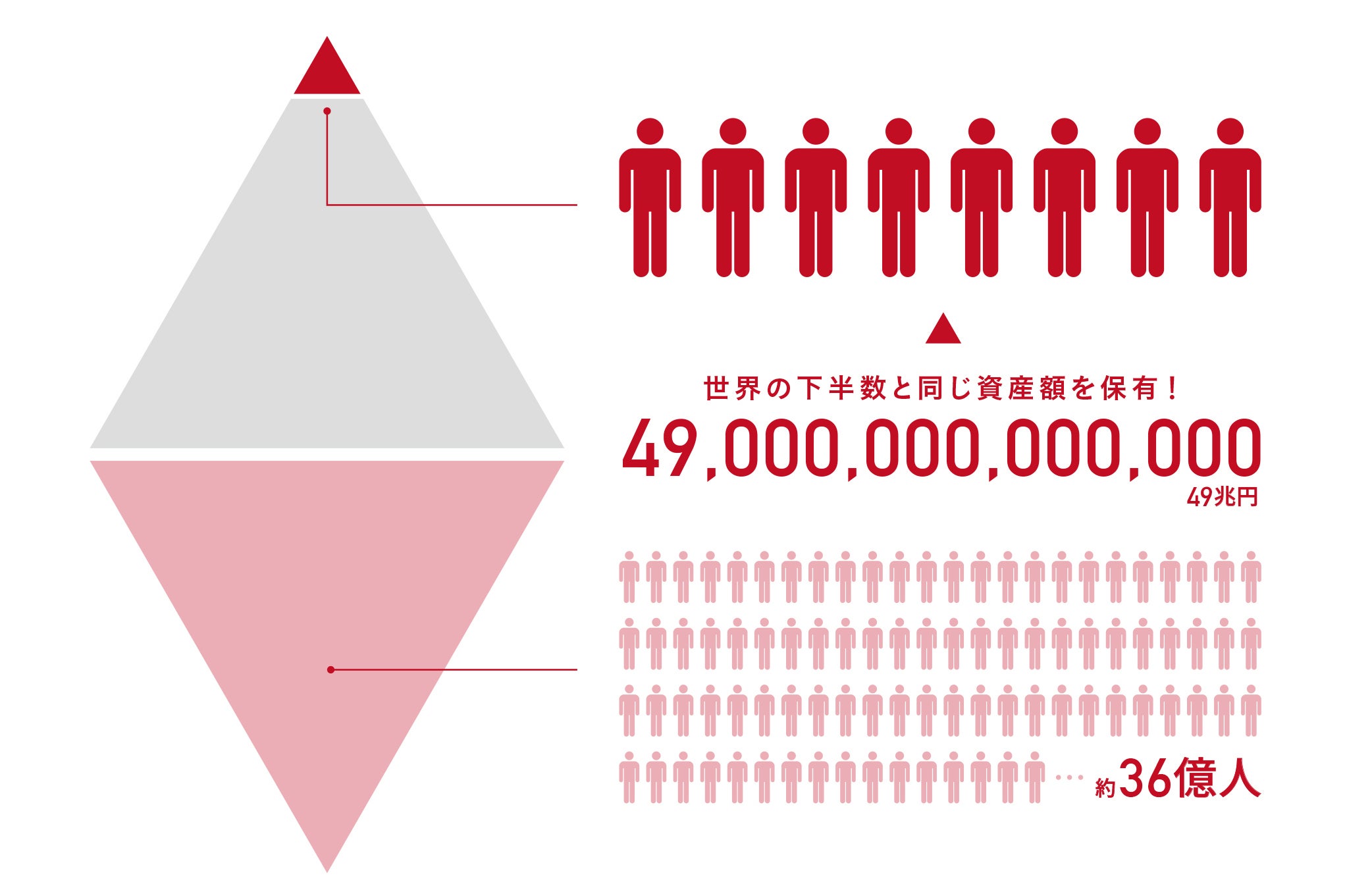 世界で最も裕福な8人が、世界の下半数の人々の富(49兆円)を所有している。*¹