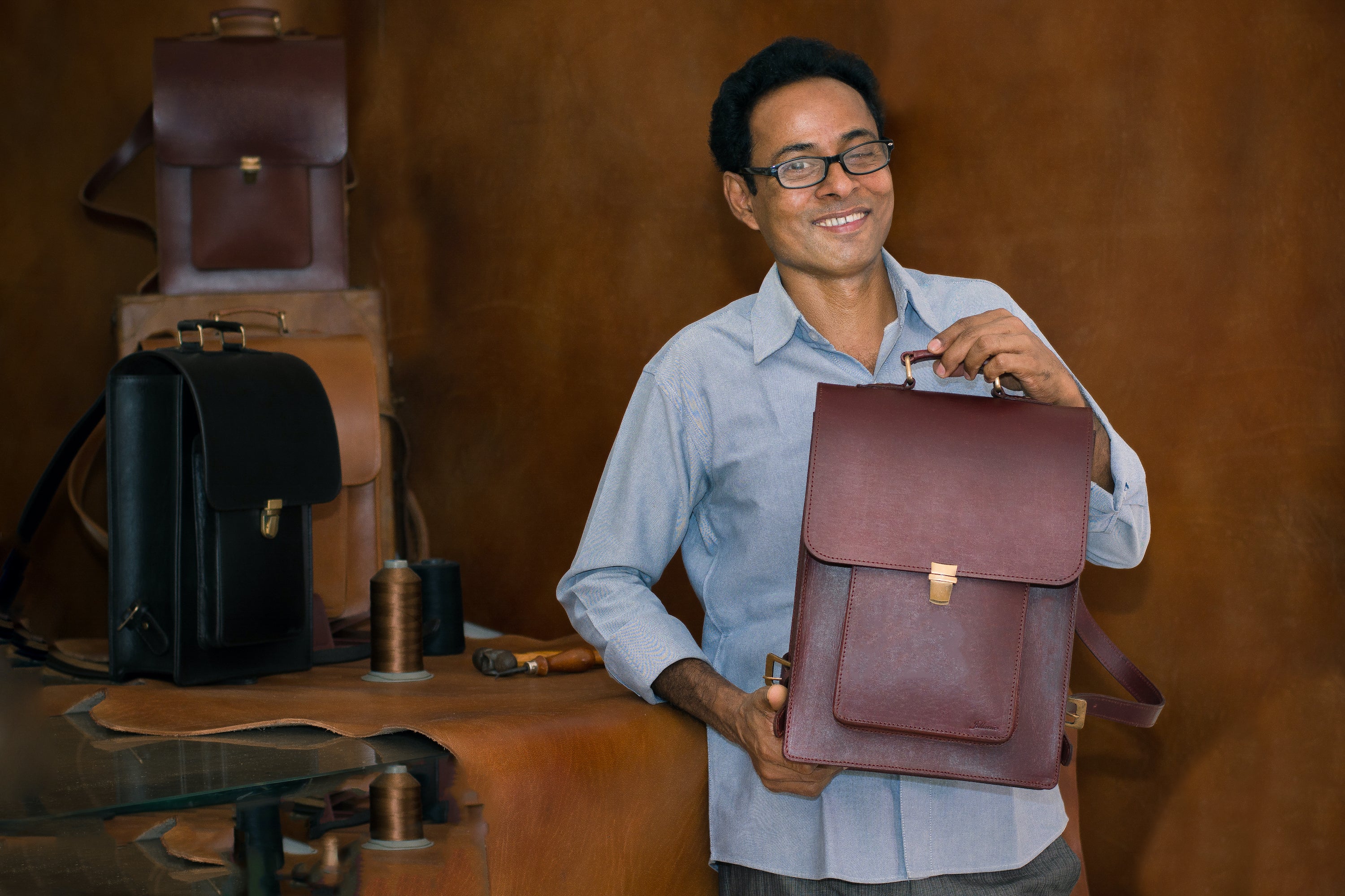 それから25年、革職人一筋で歩んでおり、子宝にも恵まれ、3人の小さな娘がいる。