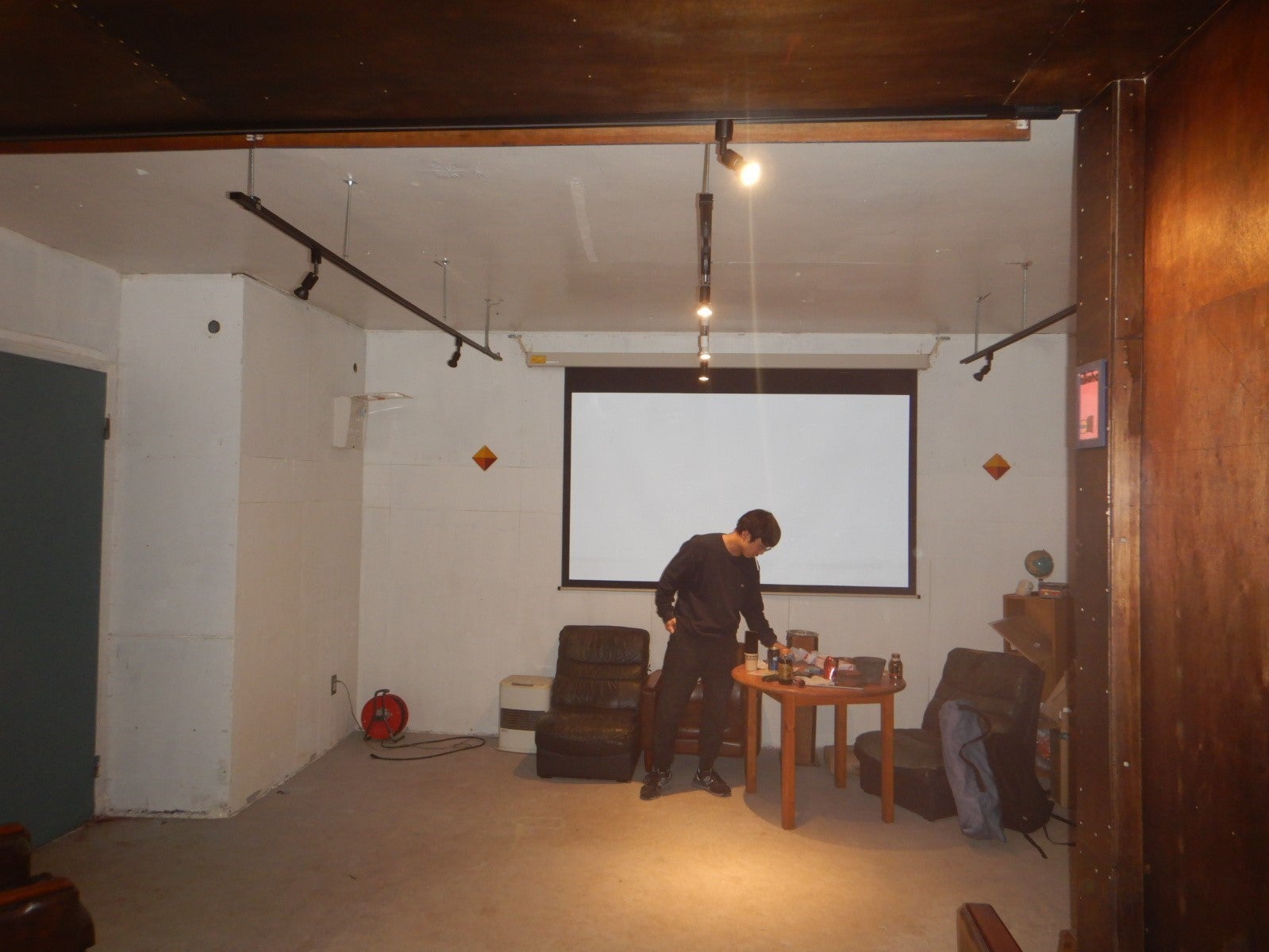 壁を張り替え、電気を通し、友人から安く譲ってもらった冷蔵庫やスクリーン、ソファを取り入れて、やっとある程度くつろげるようなスペースになりました。