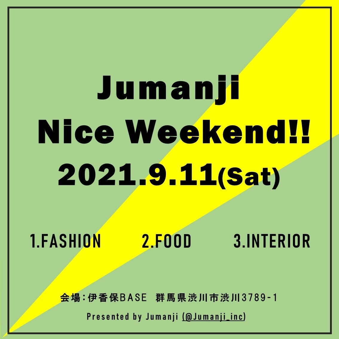 2021/09/06 21:02こんにちは。ご無沙汰しております、イッセイです。お久しぶりの方もそうでない方も、お知らせを書いたのでお時間あれば読んでみてください。ジュマンジのインスタをフォローしてくださっている方は既にご存じかもしれませんが、今週末の9月11日(土)にジュマンジ及びジュマンジが入居している伊香保BASEを使ったイベントを開催します。Jumanji Nice Weekend -ジュマンジナイスウィークエンド-2021年9月11日(土)11:00~17:00今年の6月に「ジュマンジ解放日」という名で県内の古着屋やファッションブランドを集めたイベントを行いました。 開催の報告はこちらそして今回、ファッションの他にインテリアやフードなど出店者のジャンルを広げた、さらに多くの方々が楽しめるイベントを開催します。思い通りに過ごせず気が滅入るような毎日ですが、毎日の生活の中で身に着ける衣服や、美味しい食べ物や飲み物、ハイセンスなインテリアや雑貨と触れることで皆さまの生活がより豊かなものになっていけば、こんな時世でもなんとか楽しく過ごすことができるんじゃないでしょうか。そんな想いの元で行う、僕らジュマンジなりの楽しい週末のご提案です。衣食住をテーマに、僕らが今の群馬で気になるヒトやお店をお声がけして集めてみました。イベント詳細を下に載せておきますので是非チェックしてみてください。また、この記事の最後に僕目線での各出展者の紹介を書いておいたので、良かったらお楽しみください。【イベント詳細】--------------------------------------------------Jumanji Nice Weekend -ジュマンジナイスウィークエンド-日時:9月11日(土) 11:00~17:00会場:伊香保BASE &:FREEDOM住所:群馬県渋川市渋川3789-1-コンセプト-群馬県渋川市の廃工場跡地「ジュマンジ」から素敵な週末のご提案です。好きな服を身に纏い、居心地の良い自分だけの空間で、美味しいものを頬張る、という3つがあればこんなご時世でもなんとか楽しく生きていけるんじゃないか。そんな衣食住にまつわるモノを扱う、群馬の素敵なヒトやお店を集めてみました。詳しくはこちらのアカウントをフォローして情報をご確認ください。→ @jumanji_inc【出店者ラインナップ】FASHION→・Naple used clothing(ユニセックス古着) @naple_used_clothing_kiryu・en(ユニセックス古着) @furugiya_en・lien(レディース古着) @lien_vintage・anen(ドメスティックブランド)@anen_officialINTERIOR→・STYLE(インテリアブランド“ACTUS”の家具と雑貨) @styletakasaki_actus・創造FACTORY(オーダー家具の相談とインテリアブランド“DULTON”の雑貨) @sozo_factory_pixi・古材古道具屋ひの芽(古材・古道具とワークショップ) @hinome_kozai_furudogu・アラジン商会(ヴィンテージストーブ) @vintage_stove_campanyFOOD→・HigeCoffee(スペシャリティコーヒーの提供と豆の販売) @hige.coffee・BlueMetsBurger(オリジナルハンバーガーの提供) @bluemets_burger・Gyoza Lab(オリジナル餃子の提供と冷凍餃子の販売) @gyoza_laboo【駐車場】会場の「伊香保BASE」に駐車場がございます。会場から徒歩2分ほどの第2駐車場については別途ご案内いたします。【コロナウイルス対策】・飲食スペースでのご飲食時以外はマスクの常時着用にご協力いただきます・滞在時間は一組につき1時間程度でおねがいします・1組4名様以下でのご来場にご協力ください・入場時の検温・消毒・マスク着用確認させていだきます・ソーシャルディスタンスの徹底・混雑時の入場制限の実施、常時屋内換気【備考】入場無料ですが、出入り口に投げ銭ボックスを設置させていただきます。見て、買って、食べてJumanjiNiceWeekendを楽しんだお帰りの際に、1円単位からでも構いませんので投げ銭を通して当イベントをサポートしていただけると幸いです--------------------------------------------------いかがでしたか?気になるお店などありましたら当日はぜひお越しください。感染症対策も上記の通り万全の状態でお待ちしております。当日のお客様の入り用によっては一旦入場をお断りする場合もございます。その際は、ジュマンジから車で10分ほどのオススメスポットに立ち寄った後、再度お越しいただければと思います。周辺のオススメスポットの紹介はこちらから→ ➀みうら売店 ②ソナル ③やまのは~ひとこと紹介のコーナー~今回のイベントは実に多様な顔ぶれになりました。それもそのはず、「どんな人が来ても絶対に1つ以上の発見をして帰れるように」と、一つの地域やジャンルにこだわらないことを意識したラインナップにしてみたからです。新しい趣味の開拓や、行きつけショップの開拓、次の休日の行き先(実店舗巡り)の発見などなど…既に皆様が持っている繋がりがさらに広がっていければいいなと思っています。ということで、当日をより楽しんでいただくために僕の方から個人的な経緯やきっかけを含めての出店者の皆様を紹介いたします。◆FASHIONカテゴリの出店者について 古着ショップを中心に4つのお店をお声がけしました。ユニセックスとレディースとオリジナルのドメスティックブランド